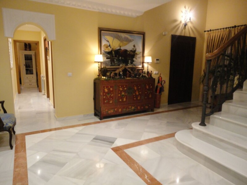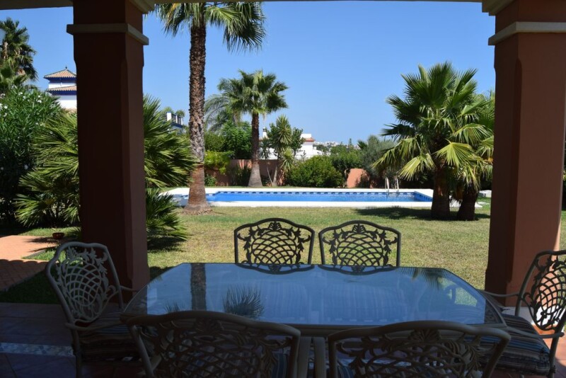 Villa in Estepona for sale on the beachside This beautiful family villa in Estepona, on the shores of the Mediterranean Sea, can be as a cosy home and as an excellent investment. The villa is located 150 metres from the beach, has 1,823 m2 plot, a beautifully manicured garden with fruit trees and a swimming pool. The interior of the house has been decorated in a classic style. The owners have taken great care of the property and it is in good condition. The house welcomes you into a large entrance hall, from which you enter a spacious living room with a fireplace and a separate kitchen with dining area. On the first floor you can find 4 bedrooms, each one with its own bathroom.