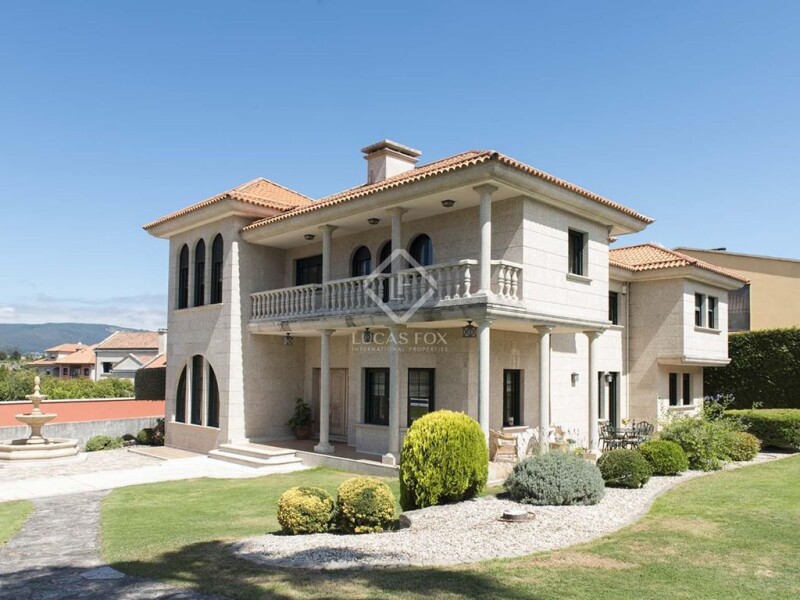 Pontevedra is a charming city in the south-west of Galicia, known for its beautiful clean centre, quick access points to all the well known beautiful beaches of the Rias Baixas. We find this stunning villa situated in a sought-after residential area near the city centre. The villa measures a total of 570 m² approx, with a layout of 3 levels. The property offers a stunning well-kept garden with beautiful landscaping, porches and fountains which make this a unique and remarkable place. On entering the property, we are welcomed to a beautiful space with a stunning architectural stone design. Once inside the home, we find the entrance hall that leads us to the common areas of the villa. We find a small study/lounge, the large living and dining room, a guest bedroom, bathroom and the kitchen section with quality appliances and very well finished and a small breakfast and dining area, which leads to the outdoor summer dining space. On the same level, we find the grand staircase, which leads to the first floor. Once above we have the sleeping area with two bedrooms, a bathroom and a study. The master bedroom has been well finished and boasts a stone balcony overlooking the farmland. Next to the master bedroom, we have an extraordinary home office and library, an ideal place to work on projects. On the ground floor, we have the parking area for four vehicles, the utility room and a gym. The property, finished by the current owners, boasts top quality finishes, appliances, Ralph Lauren Paint, imported U.K wallpaper and German-made machinery for the utilities. This home would suit a family or couple looking to be near the city centre of Pontevedra or the beautiful beaches of the Rias Baixas, which is a short driving distance away. The home is also situated a five-minute drive to Sek International School.