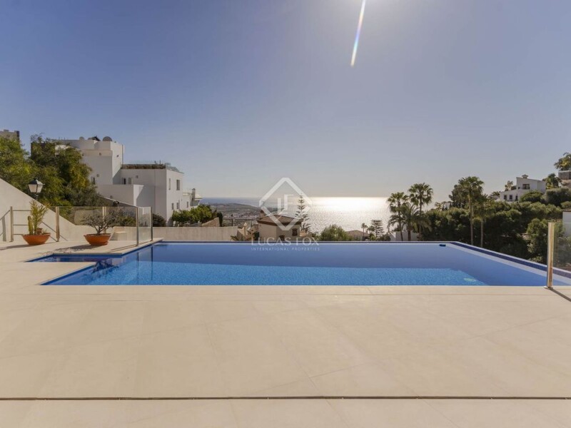 Lucas Fox presents this spectacular contemporary design villa , completed in 2021, with avant-garde architecture, without sacrificing maximum comfort and exclusivity. The property is located in the prestigious Monte de los Almendros development and offers stunning views of the Mediterranean Sea and the charming coastal town of Salobreña. From the moment you enter the property, you can see the attention to detail and the quality of the materials used in its construction. The house, spread over two floors, has been designed to maximise natural light and to offer a fluid connection with the exterior. On the main floor , there is an elegant and bright living-dining room with a modern, fully equipped open-plan kitchen . From here, the large windows lead us directly to a spectacular panoramic terrace, where the impressive infinity pool is located, with an infinity effect on the blue horizon of the Mediterranean. On this same floor, we find two large bedrooms, one of them with a private bathroom. The lower floor houses two additional bedrooms, all of generous size, a full bathroom and a large multi-purpose living room , ideal for use as a cinema room, gym or entertainment area. In addition, on this level there is a practical storage room and a private garage with capacity for three vehicles. Exterior, there is a tropical garden with fruit trees such as avocados, mangoes and lemon trees, with wonderful landscaping. Meanwhile, the large terrace offers the perfect setting to enjoy the privileged climate of the Costa Tropical, with more than 320 days of sunshine a year. This property represents a unique opportunity for those looking for a luxury residence in an exceptional natural setting. This exclusive villa is ideal either as a permanent property , second home or investment. For more information or to arrange a private viewing, please do not hesitate to contact us.