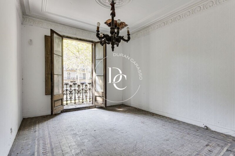 Important flat located on the main floor of 148,45 sqm, with a private terrace of 30 m2 on the prestigious Gran Via de Les Corts Catalanes. In the sought-after neighbourhood of Eixample Esquerra, this piece offers a unique opportunity to experience the freedom to realise the dream of designing your own home. This is a very unique property, to be completely refurbished, in a building that is in the process of being renovated. The property is arranged length-wise and has a double orientation. It is a property with high ceilings, hydraulic Nolla floors and several original elements, ideal to be brought to life during its refurbishment. It currently has a very bright living-dining room with a balcony, 5 bedrooms, a complete bathroom, a toilet and a kitchen. In addition, the property has a very spacious and luminous gallery that gives way to a wonderful sun-bathed terrace, and also includes a large independent 18 m2 exterior room. Located in the heart of the Eixample, this flat perfectly combines historical elegance and contemporary living. Gran Via offers a wide variety of shops and services of all kinds and is very well connected to the whole city by public transport and has very easy and quick access to the airport. Included in this listing are some photos of the refurbished flat. Plans of potential distribution projects and estimated budgets can also be provided. Without doubt this is an opportunity to make this your home or an excellent investment. Please contact us for more details or to arrange a viewing. #LiveWhereYouWantToLive.