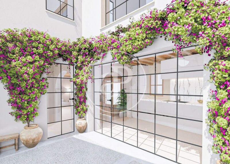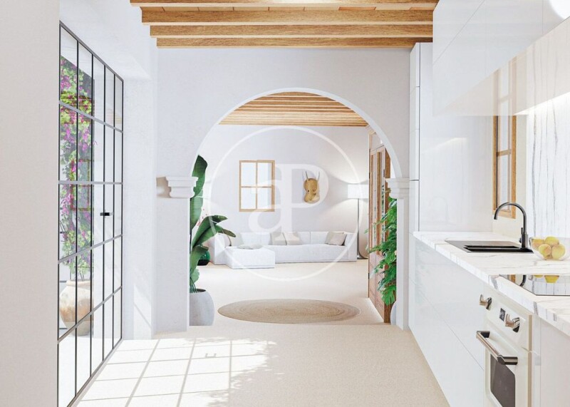 Located in the charming village of Arta, this townhouse sits in a serene area, just steps away from the imposing medieval castle of Arta. Its design and renovation offer a perfect fusion of traditional Mallorcan architecture and modern comforts. The property is undergoing a complete refurbishment, using top quality materials and conforming to the highest standards of modernity and quality. Distribution on four floors: Ground Floor: Accessed through a charming foyer that connects to a modern and functional kitchen. From here, you can access an interior Mediterranean courtyard, a spacious and bright living room, a guest toilet and a master bedroom with a luxurious en-suite bathroom. In the basement, a g arage with space for two vehicles and a wine cellar set in the old vault of the house. Second floor: Two bedrooms with their own en-suite bathrooms. The master bedroom with a spacious dressing room stands out. Roof Terrace: A jewel of 67 square meters that includes an outdoor kitchen with barbecue. It also has a small pool that offers panoramic views of the castle of Arta. Additionally, a multifunctional space that can be used as an office or bedroom, accompanied by a full bathroom. La propiedad ofrece vigas de madera expuestas y suelos de gran formato de micro-cemento. Equipamiento Moderno, estufa de pellet en el salón, cocina equipada con electrodomésticos de la marca Siemens o similares. Aire acondicionado y calefacción por suelo radiante mediante aerotermia, complementado con soporte de placas fotovoltaicas para una eficiencia energética óptima. Destaca su excelente aislamiento acústico y térmico gracias a la lana mineral utilizada. Acabados en carpintería de madera del norte o similar, añadiendo un toque cálido y tradicional a la vivienda. Esta propiedad combina a la perfección el encanto histórico con las comodidades modernas, ofreciendo un hogar único en una ubicación privilegiada. .