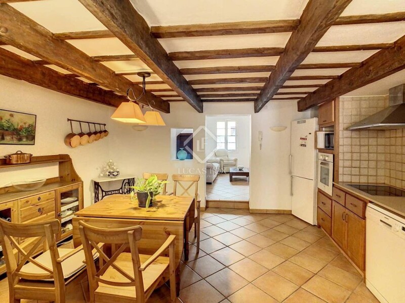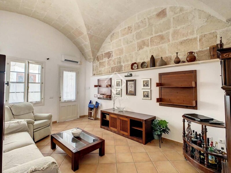 244 m² house with a 6 m² patio, a 35 m² terrace and a 40 m² solarium with spectacular views of the historic center of Ciutadella. Currently the house is divided into two houses with separate entrances. The first house occupies the ground floor. Upon entering, we are greeted by a spacious living room with sandstone vaults, which then leads us to the kitchen-dining room with exposed wooden beams. Through a small corridor, we access the semi-basement floor with a huge open space with a sandstone vault. In the corridor, through sliding doors, we have a single bedroom. Following the corridor with built-in wardrobes, we find a bathroom and another double bedroom also with a built-in wardrobe and access to the 6 m² patio with a laundry room. This house has split air conditioning and heating and is ready to move into. Upon entering the second home, we are greeted by an entrance staircase that leads us to a semi-floor with a large living room with sandstone vaults. From here, following the corridor, we find two bedrooms and a bathroom. Continuing up the stairs, we reach the first floor where we have another double bedroom. Another flight of stairs takes us to the second floor where we find a quite spacious mezzanine and a kitchen open to a large dining room with a wood-burning fireplace and access to a splendid 35 m² south-facing terrace. Finally, we arrive at the 40 m² terrace-solarium with spectacular views of the historic center of Ciutadella. This unique house needs updating, but it is perfect for those who want to keep the two houses or reform it into a single house. Contact us for more information or to arrange a visit.