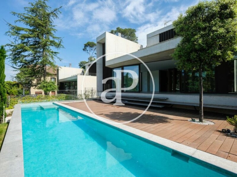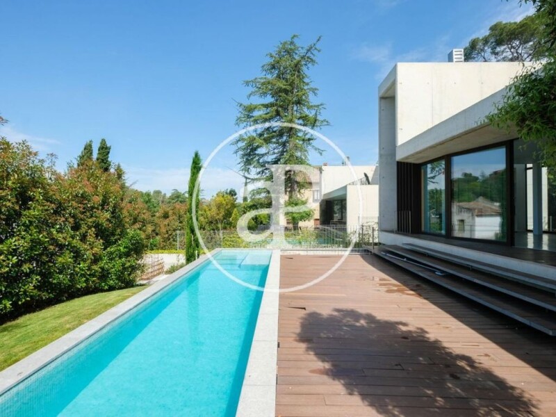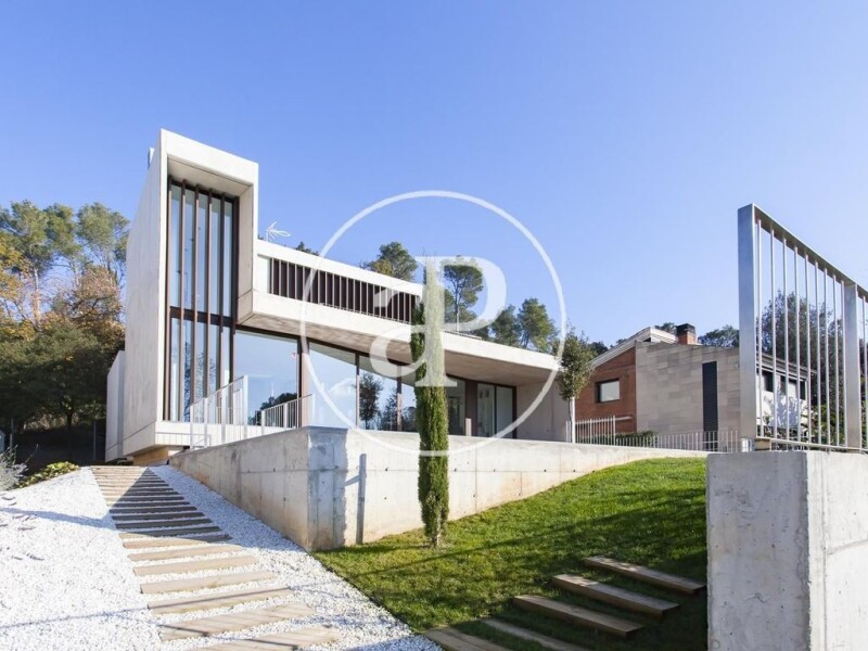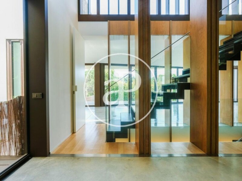 Spectacular detached house of minimalist design of new construction, located in the most exclusive and quiet area of Sant Cugat, specifically, in El Golf. A residential area that enjoys maximum tranquility, in addition the house is located, near bus stops, walking from FFCC stations and the city center. Likewise, close to infinity of sports clubs with private transport. The house stands on an 800 sqm plot and the construction is 573 sqm, distributed over 4 floors, all of which are interconnected by an elevator. The entire house has large windows and windows, which allow us to enter a lot of light and invites us to have a spectacular feeling. On the main floor we find an incredible and bright living room with fireplace, which thanks to its large windows we can access the outside, with a porch and infinity pool, a charming office kitchen and a guest toilet. On the upper floor we are presented with the master bedroom with a complete bathroom with shower and bathtub and two dressing rooms, with exclusive and privileged access to a solarium / terrace with fantastic views. On another floor is the night area that has 4 bedrooms (all spacious with fitted wardrobes) and 3 bathrooms, in addition to a large multipurpose room of 70 sqm. The property has a four-car garage, plus outside space for motorcycles and bicycles, a machine room, a large laundry area and a service room. QUALITY FINISHES: Polished concrete and wooden floors, electric shutters, home automation, underfloor heating, solar panels, oak interior carpentry, exterior carpentry with double glass (thermal and acoustic) and air conditioning with cold and heat pump in the whole house. LOCATION: Located in a privileged and exclusive area of Golf - Can Trabal, it has excellent communications with the main roads with unbeatable access to Barcelona and its surroundings. The Golf-Can Trabal area stands out for its quiet residential areas characterized by its proximity to an infinity of services, shops and medical services just a few minutes away. Feel free to contact us, the expert team at aProperties will be happy to assist you and help you find your future home.