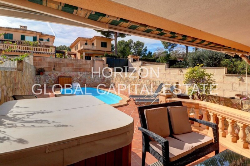 Charming semi-detached house with pool in Palmanova This beautiful semi-detached house is located in Palmanova, one of the most sought-after communities in Spain. The location offers a harmonious mix of tranquility and practical proximity to important amenities and the lively city center, which is only about 11 kilometers away. Shopping facilities for your daily needs are available in the immediate vicinity, just a few minutes' walk from your new home. You also benefit from excellent transport links, with the freeway just 570 meters away and a bus stop just 190 meters away, guaranteeing you flexibility and convenient mobility. Family-friendliness is a top priority here, as both a kindergarten and an elementary school are just a few minutes away, making everyday life with children much easier. This property offers an ideal location that combines both the amenities of daily life and proximity to nature, giving you the opportunity to enjoy Mediterranean life to the full. Welcome to this exquisite semi-detached house in Palmanova, a town known for its Mediterranean flair and incomparable lifestyle. This well-kept property was built in 2000 in solid construction and offers you numerous amenities on a generous living space of approx. 200 m². The property boasts a well thought-out room concept with a total of five rooms, including four spacious bedrooms and three modern bathrooms. A stylish fitted kitchen in an open-plan design invites you to enjoy culinary delights and underlines the modern living comfort. High-quality tiled floors run through all living areas and give the house an elegant touch. The cozy fireplace creates a cozy atmosphere and is the ideal place for relaxing evenings. Another highlight is the spacious terrace, which offers plenty of room for the perfect outdoor lifestyle. On hot summer days, the refreshing swimming pool provides cooling and bathing fun. The spacious plot of approx. 500 m² offers plenty of room for outdoor activities and relaxation. There are also four outdoor parking spaces for your vehicles. Efficient wall radiators guarantee pleasant heat distribution throughout the house. This semi-detached house in Palmanova combines a luxurious living ambience with practical functionality and is the perfect choice for discerning buyers looking for a stylish and comfortable home. Don't miss out on this unique offer and experience living pleasure at the highest level. - Modern bathroom with window, shower and WC - Stylish fitted kitchen in open design - High-quality tiled floors throughout the living area - Cozy fireplace for relaxing evenings - Spacious terrace for the perfect outdoor lifestyle - Refreshing swimming pool for warm summer days - Four outdoor parking spaces for convenient parking - Efficient wall-mounted radiators for cozy warmth throughout the house The information provided by HORIZON GLOBAL CAPITAL ESTATE S.L. has been researched and published with the greatest possible care. However, the accuracy, completeness and timeliness of the information cannot be guaranteed and HORIZON GLOBAL CAPITAL ESTATE S.L. therefore accepts no liability for any errors or omissions. Unannounced price changes or withdrawals of offers cannot be ruled out.