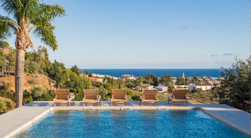 BlueLife Realty presents for sale this hidden gem, nestled in the mountains behind Estepona's historic center. This spectacular property offers panoramic sea views and breathtaking views of the Sierra Bermeja mountains. Located just 2 km from the historic center and the beach promenade, it offers convenience and privacy on a large south-east-facing plot of 3058m2. This unique project was recently completed in November 2023. This versatile property can be used as a primary residence, for year-round rentals or as a location for a yoga retreat or business. It boasts a host of features that make it attractive for a variety of uses. The residence offers a built area of over 450 m2 with 6 bedrooms, 2 closed kitchens, an outdoor kitchen, infinity pool, sauna, bocce court and much more. The main house includes 4 en-suite bedrooms, a bespoke dressing room, mezzanines, living spaces with sea views and a large outdoor terrace. The property also features a separate guest house, service area and outdoor terrace. With its luxurious amenities, breathtaking views and privileged location, "The Retreat" is a true masterpiece and a remarkable opportunity for those seeking a high-end property in Estepona.