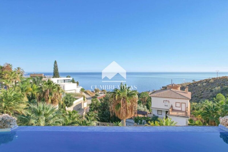 Luxurious property located in Monte de los Almendros, Salobreña, on a plot of 810 m2, distributed on three levels. The upper floor offers a garage for two vehicles and a separate guest suite. On the middle level of the villa, there are 3 bedrooms with en-suite bathrooms. On the ground floor we find the living area consisting of a kitchen, utility room, bathroom, storeroom, wine cellar, the living-dining room which is connected to a covered porch, the infinity pool and a beautiful garden. The property also has a guest house with 2 bedrooms and 3 bathrooms perfectly integrated into the building.The best materials available were used to construct this villa; there is even a lift and the villa is fully automated. The property is close to Salobreña, the sea and the beach, and is 1 hour away from Malaga airport, 45 minutes from Granada and 75 minutes from the ski slopes of Sierra Nevada.