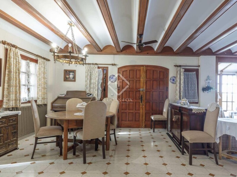 The property is located in the Monte Real development , just three kilometers from the town of Torrente and very close to a commercial complex where you can find everything you need for daily life, such as shops, supermarkets and a gas station. A few meters from the house we can enjoy the impressive facilities of the Monterreal sports club, with clay tennis courts, paddle tennis, swimming pool, social club with restaurant and thousands of meters of green space. We are looking at a well-built house, which we notice as soon as we enter. Once inside, we access a spacious and bright living-dining room with a fireplace, with an exposed brick wall, wooden beams on the ceilings and windows, a fireplace and even a bar counter. The kitchen is fully equipped, has a utility room area and has direct access to the terrace with fantastic views of the mountains. This floor also has a bedroom and a full bathroom . When we go up the stairs, we reach a hall that leads to the six rooms on this floor, with wooden floor . Offered is the main bedroom with private bathroom and balcony, a single bedroom , two double bedrooms, a full bathroom and another large bedroom . The lower ground floor, in addition to the garage with capacity for two vehicles, has a storage room, also used as a wine cellar, and a large dining room room with fireplace and kitchen. Exterior we can enjoy a garden, a swimming pool of more than 10 meters, a small barbecue and additional exterior space to park more cars. The property is very well connected by public transport, quick access to the highway and close to several international schools. Do not hesitate to contact us for more information or to organize a visit.