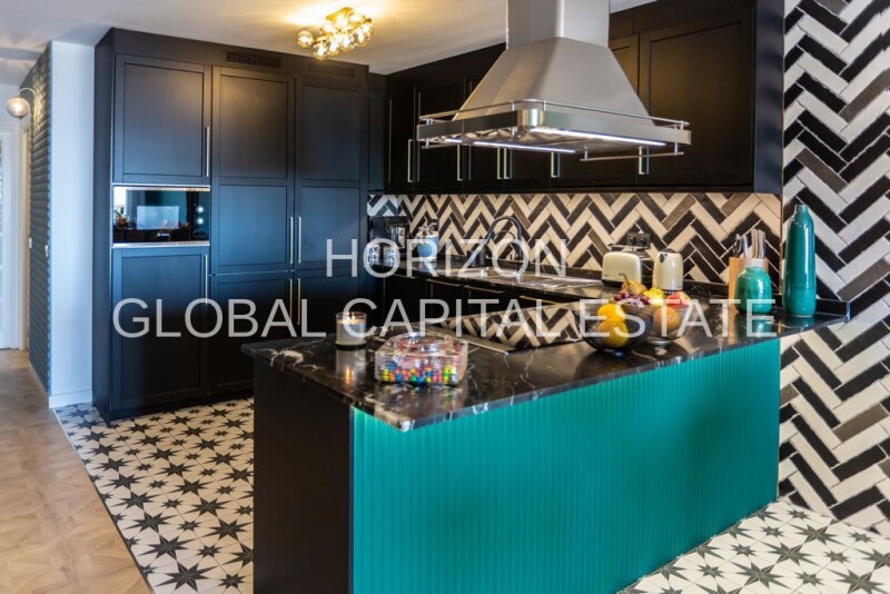 Exclusive apartment in El Terreno with partial sea views & fantastic furnishings This luxurious apartment is located in one of the most sought-after residential areas of Palma de Mallorca and offers an excellent mix of urban comfort and quiet neighborhood. Just 4.7 kilometers from the lively city center, you will enjoy quick access to the cultural highlights, shopping and dining experiences that Palma has to offer. The excellent transport links make it easy to explore the surrounding area or get out of the city; the nearest highway is just 330 meters away. A well-developed public transport network is also available, with a bus stop in the immediate vicinity, just 330 meters away. Shopping facilities for daily needs are conveniently located just 1.13 kilometers away. Families will appreciate the proximity to educational facilities, with the nearest kindergarten just 450 meters away and the elementary school only 270 meters away. This strategic location ideally combines infrastructural advantages and family-friendly surroundings, making this apartment the perfect choice for both commuters and families. Enjoy the benefits of this prime location, which offers you a comfortable and relaxed life on the beautiful island of Mallorca. Welcome to this luxurious apartment in Palma De Mallorca with unforgettable sea views. This stylish and well-kept property offers an impressive 6 rooms on approx. 213 m² of living space, including 5 spacious bedrooms and 5 modern bathrooms all en-suite. Enjoy the high-quality fittings and construction of this solid construction that leaves nothing to be desired. The open fitted kitchen, equipped with high-quality electrical appliances and sophisticated design, is the heart of the apartment. The luxurious living space is complemented by bright, modern bathrooms and individually adjustable air conditioning in every room. The elegant tiled and parquet flooring lends the apartment a sophisticated atmosphere. The south/southwest-facing balcony invites you to spend sunny hours outdoors and enjoy the magnificent sea view. A private house bar with table football and dartboard offers additional recreational fun. The apartment is also well equipped technically: In addition to efficient natural gas central heating and air conditioning, it has high-speed internet, cable and satellite TV, as well as an intercom system. Style and functionality go hand in hand here. Built-in wardrobes with lighting, custom-made sliding doors, LED spotlights and indirect LED lighting are evidence of well thought-out planning and luxurious finishes. This exclusive apartment includes two elevators and a covered parking space for added convenience. In addition, the fully basement building offers practical storage space and an excellent first-class renovation with high-quality materials that speak for an excellent finish. All this makes this apartment the perfect choice for discerning buyers looking for a combination of luxury, comfort and exclusive location. The apartment is available by appointment - arrange a viewing today and be inspired by this dream property. - Bright, modern bathrooms with floor drain, towel heating as well as shower and bathtub - Open, ultra-modern fitted kitchen with all extras, incl. high-quality electrical electrical appliances. - Practical storage room for additional storage space - High-quality tiled and parquet flooring - Cable and satellite TV connection available - Sunny balcony for relaxing outdoors - Built-in wardrobes with lighting - LED spotlights and indirect LED light - Custom made sliding doors - Storage utility room - 7 flat screen televisions in each bedroom & living room - Luxury & designer furniture - included in the price - Very modern home technology with intercom system - High-speed fiber optic internet and telephone connection - Individual adjustment of the air conditioning - Private house bar incl. table football and dartboard - The high-quality manner of the renovation should be emphasized - High-quality materials (no Bauhaus renovation) with excellent workmanship! workmanship! - Sun orientation in south/southwest - 2 x elevators - One 11m2 covered parking space included - Full basement for extra storage space - High quality double glazed aluminum windows in skyframe style - Efficient central heating for cozy warmth with natural gas - Air conditioning hot/cold (individually adjustable in each room).