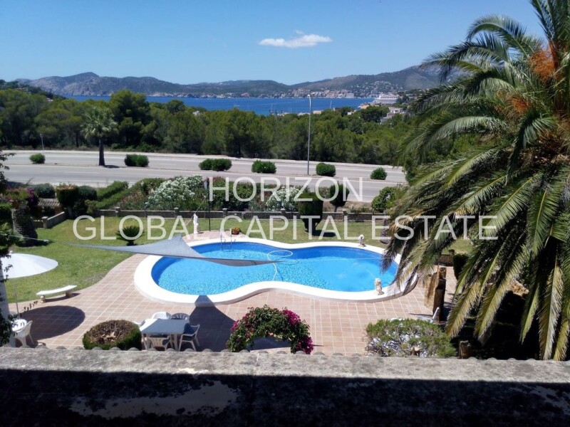 Charming villa with sea views & pool in Santa Ponsa Nestled in the enchanting region of Santa Ponsa, Spain, this exquisite villa offers a harmonious blend of tranquillity and accessibility. Perfectly located just 15.65 kilometers from the vibrant city center, it offers an ideal retreat from the hustle and bustle while being well connected. For everyday conveniences, a vibrant shopping district is just 3.18 kilometers away, so all your needs can be met effortlessly. The villa's strategic location also offers excellent connectivity: The highway is just 1.2 kilometers from the front door, allowing for seamless travel throughout the region. For families, the villa is an oasis of convenience. A bus stop just 0.23 km away provides good public transport links, and the villa's proximity to educational facilities makes it even more attractive. A kindergarten is located just 0.45 kilometers from the villa, and elementary school are just 0.63 kilometers away, offering first-class educational opportunities for young children. Enjoy the tranquil lifestyle made possible by the idyllic location of this villa. It offers the perfect balance between tranquil living and accessibility to local amenities. Welcome to this stunning villa for sale in the picturesque municipality of Santa Ponsa, offering breathtaking sea views and an incomparable living experience. Built in impressive solid construction, this well-kept property offers plenty of space for luxurious living on a generous plot of approx. 1,300 sqm. The villa extends over two floors and offers a harmonious blend of elegance and comfort with eight spacious rooms, including six bedrooms and five bathrooms. Each bedroom is designed to have direct access to the spacious terrace, emphasizing the indoor-outdoor lifestyle. The villa is ideal for hosts and guests. It has a modern fitted kitchen, two fireplaces and a huge terrace area of approximately 400 m², adorned with a charming fountain and two barbecue areas. The amenities of this exquisite property include a private sauna, a beautiful swimming pool and an advanced irrigation system to maintain the lush gardens. The elegantly tiled floors and central heating ensure a cozy ambience all year round. Leisure facilities are in abundance with spacious lounge areas and a dedicated games room with pool table for entertainment. A garden shed with a bar and an additional guest toilet provide even more outdoor fun. The villa has a garage and carport with parking for at least two vehicles. Stay connected with cable and satellite television connections, while a dedicated storage room efficiently handles storage needs. Access to the home is seamless with two separate entrances, one each from the upper and lower levels. The grounds and garden are exquisitely maintained and the efficient facilities provide a truly luxurious living experience. Seize this opportunity to own an exceptional villa that promises you a tranquil retreat with unparalleled facilities and captivating views. - Bathroom equipped with bidet, window, shower, and bathtub - Separate guest toilet available - Modern fitted kitchen - Convenient storage room - Elegant tiled flooring - Cable and satellite TV connection - Two fireplaces for cozy evenings - Spacious terrace featuring a charming fountain - Access and usage of the garden - Equipped with a garden house - Private sauna for relaxation - Swimming pool for leisure - One carport included in the price - Total of two parking spaces: one garage and one carport - Efficient central heating system - Billiard table available - Two separate entrances to the house - Advanced sprinkling system for garden maintenance.
