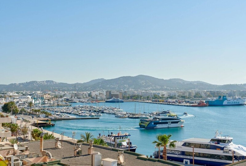 Ideal for those seeking a prime location, this luxurious penthouse is designed to offer a perfect combination of style and comfort. The spacious living-dining room features a cozy fireplace and a fully equipped and integrated kitchen, all leading to an impressive 14 m² terrace that offers stunning panoramic views of the marina and the iconic Dalt Vila. The double bedroom is completed with a walk-in closet and a full bathroom, ensuring privacy and comfort. This penthouse also offers ample storage space with several built-in closets, providing practical solutions for modern living. Additionally, there is the option to purchase a parking space in the same building, although it is not included in the sale price. Whether you are looking for a stylish urban retreat or an investment property in the vibrant city center of Ibiza, this penthouse offers the perfect combination of luxury, location, and spectacular views.