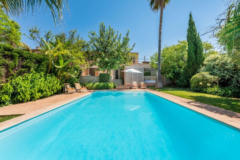 Mallorcan house renovated with charm and a lot of privacy in Establiments just 15 minutes from the center of Palma, the village offers all kinds of services. Flat plot of approximately 5000m2 and 370m2 built. On the ground floor we find a spacious living room with fireplace and high-end fully equipped kitchen. Spacious master bedroom with bathroom with bathtub and shower overlooking a patio and with access to the pool area. Guest toilet. Large terrace overlooking the garden and pool. On the first floor we find a spacious room with access to a terrace with clear views ideal as a living room. We also find three bedrooms with three en-suite bathrooms. The property also has two rooms with two bathrooms, ideal for guests as it has independent entrance. In addition, there is a romantic garden with a fountain, many trees and tall palm trees with a beautiful pool and a large green area. Additional features: workshop, laundry room, terracotta and wood floors, central heating, air conditioning, vegetable garden area. Photovoltaic and home automation installation.