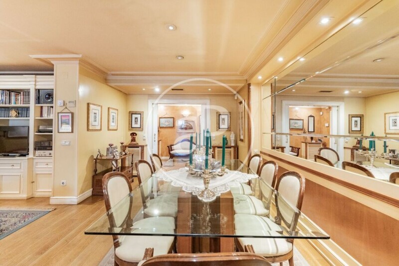 In one of the best areas of the Retiro neighborhood, aProperties presents this exclusive and magnificent property. All the rooms of the apartment are very spacious and the double north-south orientation, as well as its large windows, give very good light to the house. The day area is made up of a very large and wonderful living room whose dimensions allow the space to be organized into four different environments: social area, dining room and living rooms that include spaces for a fantastic library, TV area, desk, all in differentiated environments that coexist in perfect harmony. The night area consists of four bright and spacious bedrooms, three of them with en-suite bathrooms and an additional fourth complete bathroom. The kitchen with dining area also has a very comfortable laundry area attached. The property, which has been built and decorated to the highest standards, is in very good condition, so it does not require renovation, although it also allows multiple possibilities of updating or redistributing the spaces, given its dimensions, the format of the floor plan and the absence of load-bearing walls. For greater convenience, it also has two parking spaces in the building itself, as well as gardens and a swimming pool in the community. It is a great opportunity to live in a wonderful and luxurious apartment, in an exclusive building with all the comforts, in Niño Jesús, one of the most attractive neighborhoods of Madrid, close to the Retiro Park. Can you imagine living here?.