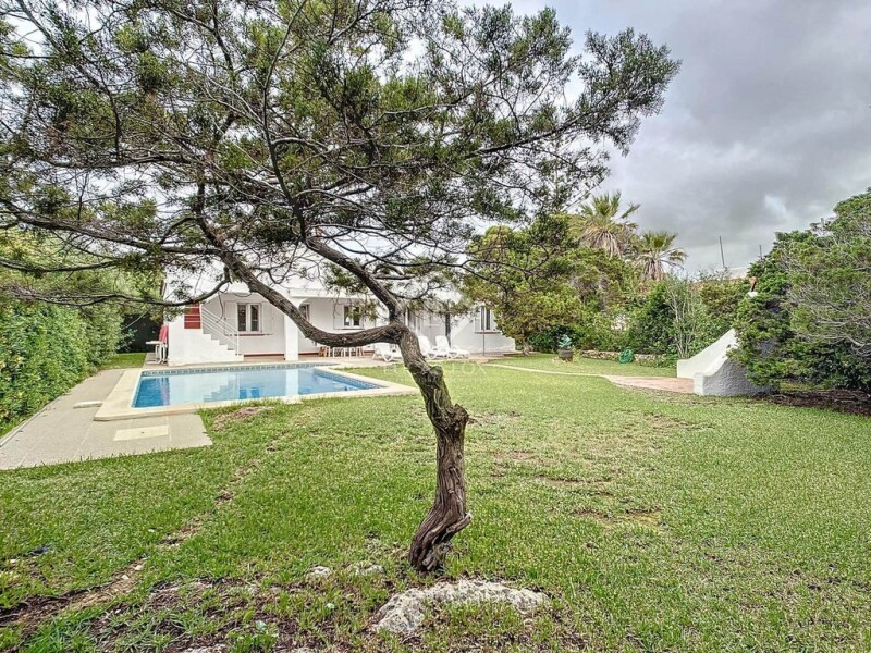 Lucas Fox presents this 160 m² ground floor villa with a 24 m² extension on a 614 m² plot and with a tourist license. It is located in the Cala'n Bosch development , in the municipality of Ciutadella de Menorca, a few meters from the marina and the beach. The property welcomes us with an entrance that gives access to the day area where we find a modern open kitchen that is very functional and fully equipped. It opens onto a comfortable living-dining room with a fireplace, ideal for winter nights, which has access to the covered porch where we have an exterior bathroom . On the other side of the entrance, a corridor leads hall to the night area where we have three double bedrooms, two of them with built-in wardrobes that share a bathroom with microcement finishes. At the front of the house we find a garage/ storage room ideal for motorcycles and bicycles. The property was recently renovated and has ceiling fans in all rooms to ensure greater comfort throughout the year, PVC tilt-and-turn exterior carpentry with double glazing, PVC Menorcan exterior blinds, alarm, Wi-Fi and automatic irrigation. Exterior, we have a large garden area with a barbecue, perfect for relaxing outdoors, a 34 m² swimming pool and stairs that lead to the terrace with distant views of the sea and where a 24 m² space could be built. Without a doubt, an ideal property to live in all year round or spend time with family and/or friends, as well as being able to rent it out as a tourist property as it has a tourist license. Please contact us for more information or to arrange a visit.
