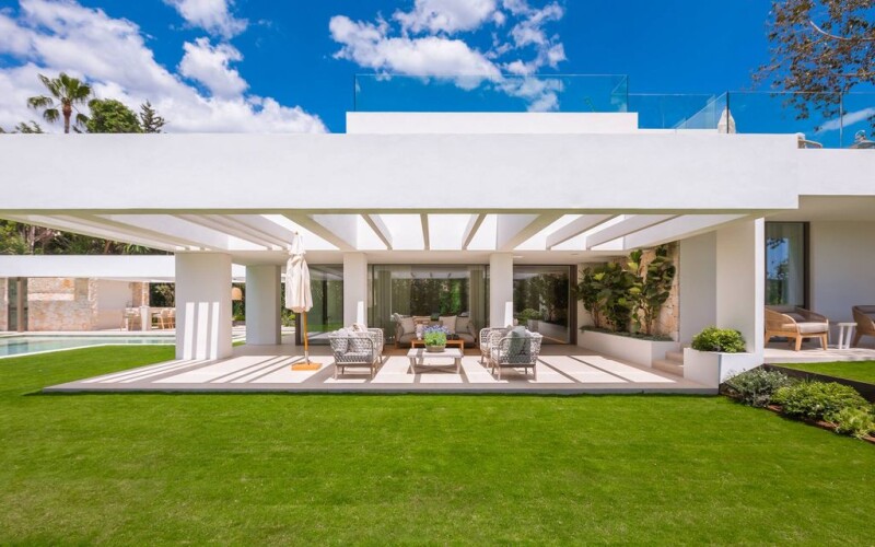 Modern villa with golf views for sale in Nueva Andalucia, Marbella A stunning modern villa situated in the prime location of Nueva Andalucia is currently undergoing an extensive refurbishment, promising a luxurious living experience redefined with meticulous attention to detail and superior construction standards. Boasting 5 bedrooms and 4 bathrooms, this residence epitomizes contemporary sophistication and elegance at its finest, offering a harmonious blend of comfort and style. Expansive living spaces seamlessly merge with an open-plan kitchen, complemented by extensive terraces featuring an outdoor kitchen, ideal for embracing the coveted al fresco lifestyle and entertaining guests in style. Enhancing the allure of this exceptional property, amenities such as a jacuzzi, sauna, and captivating views overlooking the lush golf course create an idyllic setting for family living in Marbella's most prestigious enclave, presenting a rare opportunity to reside in a truly refined and sought-after neighborhood.
