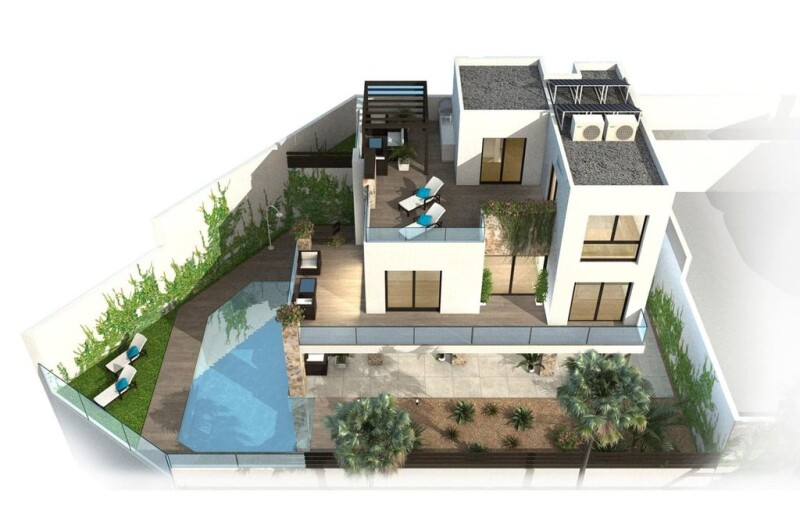 Exclusive new Luxury villas on the front line of La Marquesa Golf Course with spectacular views of the golf course, in Rojales. These two-storey villas are built on plots from 424m2-467m2. These villas are consist of 3 bedrooms (2 of them en suite), 3 bathrooms, a spacious and comfortable living room, kitchen, terraces with views to the golf course, sport area, sauna and private swimming pool. These villas include an elevator connecting all floors and parking on the premises. Rojales is a typical agricultural Spanish town with the River Segura running through the centre. You will be able to find everything you need in order to have a happy life. You can enjoy beautiful evenings, play golf, shop at the Spanish market, ride a bike along the beach or River Segura, go shopping at La Zenia Boulevard, or simply enjoy everything Rojales has to offer. There is sun, sea and total relaxation. The project is also located near Ciudad Quesada in the municipality of Rojales. A few meters away is the Rojales golf course "La Marquesa". Interested? Do not hesitate and contact our office. We will be happy to help you.