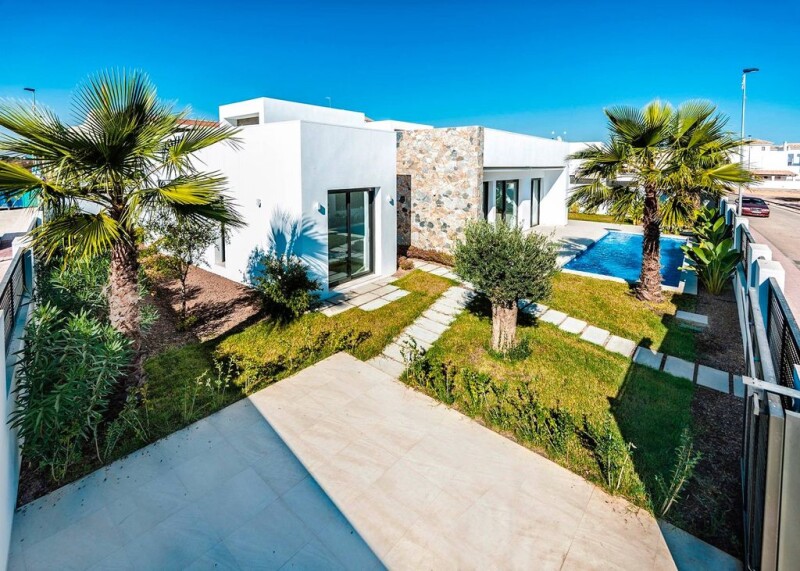 We like to present NEW PROJECT of modern villas in San Javier, 850m from the beach in Santiago de la Ribera. The project comprises villas on one level with 3 bedrooms and 2 bathrooms, and are available in different models and designs: detached villas with/without private solarium, built on plots between 325m2-534m2. All models present a spacious and open living area, with large windows that open onto the terrace and private pool area. The master bedrooms, in all models, have a private bathroom and open onto the terrace. The outdoor spaces are ideal for enjoying the Mediterranean outdoor lifestyle, on the Costa Cálida. The villas will be built with top quality materials and finishes, and will include fully installed ducted A/C, integrated white goods in the kitchen, electric blinds in the bedrooms, complete bathrooms with electric towel rail, indoor and outdoor LED lighting, private pool with pre-installation for a heat pump, and parking on the premises. The city of San Javier and its seaside neighbour Santiago de la Ribera offer an exceptional selection of daily services and amenities, like supermarkets, bars and restaurants, banks and pharmacies, schools, and a municipal sports centre offering a variety of activities. The fantastic Dos Mares shopping centre is less than 10 minutes away by car, with a wide range of shops and restaurants, as well as a cinema. The area is also known for its many outdoor activities, like golf, hiking or mountain biking, and other water-related activities like sailing, scuba diving etc. The beautiful beaches of the Mar Menor are less than 10 minutes’ drive from the project. Interested? Do not hesitate and contact us. We are happy to help you further.