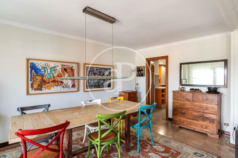In the exclusive neighborhood of Tres Torres we find this magnificent duplex penthouse of 233m2 with 92m2 of terrace. A large hall clearly separates the day and night area. This leads us to a cozy secondary living room with office area, a guest toilet and a bedroom in penthouse with terrace on Via Augusta suite with fitted closets and access to balcony with stunning views of the mountain of Collserola and Tibidabo. The kitchen is spacious and has a laundry area, is adjacent to the living room that has an original fireplace and access to a terrace overlooking Barcelona. The sleeping area has a double bedroom en suite and three single bedrooms with fitted closets, two bathrooms, a toilet. Through an elevator you access to the upper part of the house, now enabled as an office with access to a large terrace with panoramic views of Barcelona. The terrace has an area for sunbathing, barbecue, bar enabled with fridge and tap ideal for sharing with family and friends. The property has a large parking space and a storage room included in the price. There is the possibility of acquiring an optional second parking space next to the first one. The 1981 building is in very good condition, has two elevators, service entrance and concierge service. An opportunity to acquire a duplex penthouse in Las Tres Torres, very well connected to Las Rondas, national and international schools. Close to leisure areas and restaurants. A family apartment that requires updating as it now has a partition wall that separates the apartment into two apartments and a second functional kitchen. Do not hesitate to come and visit it with aProperties. .