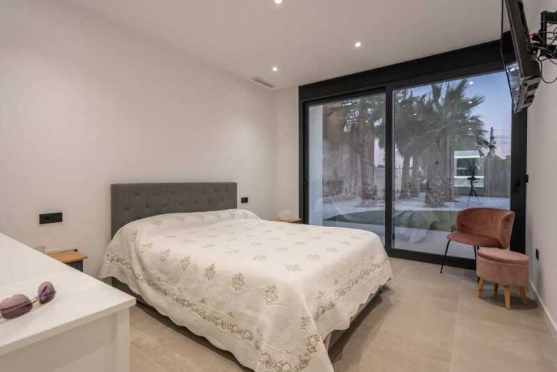 **^LUXURIOUS BRAND-NEW VILLA IN EXCLUSIVE HOUSING DEVELOPMENT IN SAN VICENTE DEL RASPEIG WITH OVER 350M2^^ Discover luxury and comfort! This recently constructed designer villa stands out for its top-quality materials, sustainable design, and energy efficiency. Primarily distributed on a single floor with large windows, the property features an open American-style kitchen connected to the living-dining room, with direct access to the garden and the pool. The sleeping area includes 4 double bedrooms and a suite with a dressing room and private bathroom. Moreover, on the ground floor, the house boasts a game room ideal for family and friends' entertainment, its own laundry room, and additional storage space. With smart facilities controllable from your mobile device, including doors, surveillance cameras, blinds, and LED lighting, coupled with energy efficiency through solar panels and aerothermal systems, this intelligent home aligns with a modern and sustainable lifestyle. The plot of over 1,250 square meters still offers expansion possibilities, allowing the construction of an additional apartment of over 60 square meters. Relax by your private pool and explore the extensive garden surrounding the property. Don't miss the opportunity to acquire this exclusive villa that seamlessly combines elegance, functionality, and modernity in a privileged environment. Contact us for more details and to schedule your visit. **^This announcement is not binding and may contain errors. It is presented for informational purposes and is not contractual^^ ***WE DO NOT CHARGE COMMISSION TO THE BUYER.
