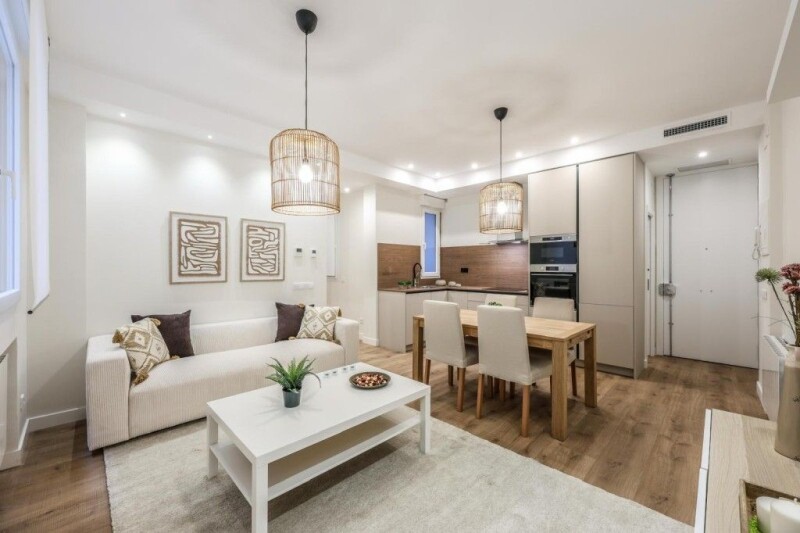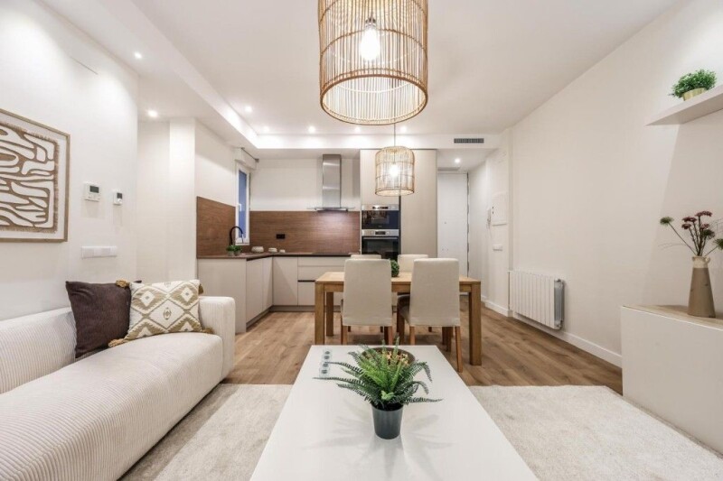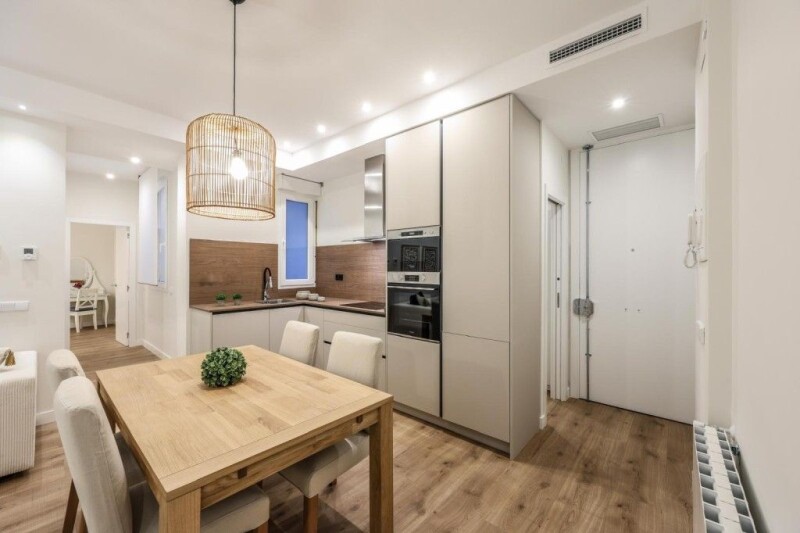 Brand new property in a 1930's building in one of the best areas of Goya, in the district of Salamanca. The surface area of the property is 75 m2, distributed as follows; an entrance hall that leads to a living room with dining room, kitchen, equipped with all appliances, in open concept. Totally refurbished and furnished, with two bedrooms, two bathrooms, one of them en suite, fitted wardrobes, dressed with shelves and drawers. Air conditioning by ducts, PVC tilt and turn windows, with double glazing and motorized blinds throughout the house. The property is sold furnished and equipped. The area is equipped with all the services and has a lot of demand both to live and to buy in profitability.