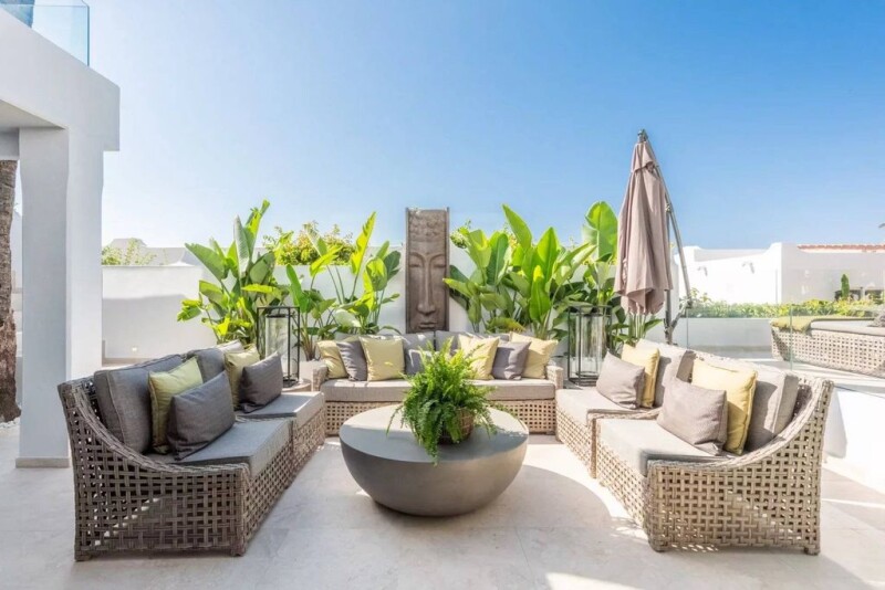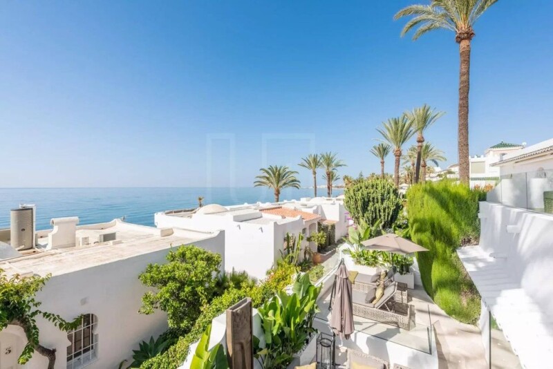 Exceptional Scandinavian style house located on the front line beach Oasis Club, a sought-after community on Marbella's prestigious Golden Mile with stunning sea views. The Oasis Club provides a desirable blend of tranquillity and convenience. Situated close to Puerto Banus and Marbella offering vibrant dining, shopping and entertainment options. Set within close proximity to international schools, supermarkets, hospitals, sports facilities and the renowned Nueva Andalucia Golf Valley. Residents enjoy direct access to a private beach club and the scenic beachfront promenade. The 189 sq.m villa is distributed over one level and uniquely blends Mediterranean charm and Scandinavian design, providing a tranquil retreat just steps away from the sea. The interior has been meticulously refurbished with premium materials, boasting a stylish elegance that represents modern luxury. The large windows flood the interior with plenty of natural light, creating a bright and airy atmosphere throughout. It comprises an ample living room that opens onto a large private terrace, ideal for al fresco dining and relaxation, a kitchen, 3 bedrooms and 3 bathrooms. There is an additional terrace upstairs offers stunning sea views. Other features include air conditioning, fireplace and bbq.