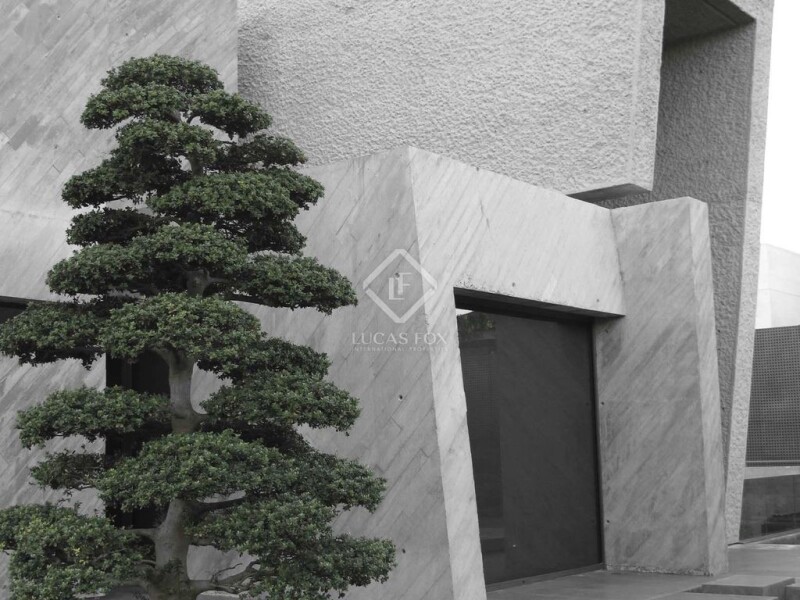 With a stunning and innovative design by Joaquín Torres and Rafael Llamazares, extensive use of ultra high quality materials and amazing living spaces, this dramatic property is a breathtaking example of modern architecture in one of Madrid's most exclusive neighbourhoods. Set in wonderful landscaped gardens with terraces, porches and a lovely pool, this futuristic villa also embraces the latest technology, from home automation and centralised Bang & Olufsen audio to a lift and integrated vacuum system. Living spaces are large and open, showcasing the villa's concrete structure and incredible architectural lines. There are 3 levels, with the double-height entrance hall welcoming you into the ground floor and opening into a truly spectacular open living space with three areas flowing into each other. The towering living room and dining room overlook the gardens through vast glass walls. These lead out onto a selection of porches and terraces that are perfect for al fresco entertaining. These two spaces are separated from the more intimate TV room by a showpiece gas fireplace that is 6m high on the living room side. The designer kitchen has high-end appliances and a large informal breakfast area, along with a pantry and laundry room. This floor also has a large bedroom suite with seating area as well as a recording studio that would also make a superb study, games room or home cinema. Upstairs the oversized master suite is breathtaking, more than 100m² and with huge glass walls bringing the outside in and a large seating area with TV. The bathroom has an impressive Jacuzzi and shower, while 2 walk-in closets with mirror doors provide spectacular storage and doors open onto a lovely terrace. A showpiece glass walkway floats above the living room and leads to 3 more generous bedroom suites. The rooms make the most of glass and high ceilings to provide a fascinating blend of space and comfort and bask in natural light. Outside, the sleek gardens offer a fascinating variety of open and covered spaces for relaxing or entertaining, with a cutting edge design to match the drama of the house. Manicured lawns flank huge concrete slabs, beautiful lush greenery emerges from stark planters and the large pool reflects the house itself. Take the lift to the basement where a service apartment offers 2 more bedrooms, a living room and bathroom. The basement also has a garage with space for 6 cars, as well as a utility room and a large storage room. Throughout, technology makes life simple with everything from home automation and central audio to sophisticated alarms and a central vacuum system. .