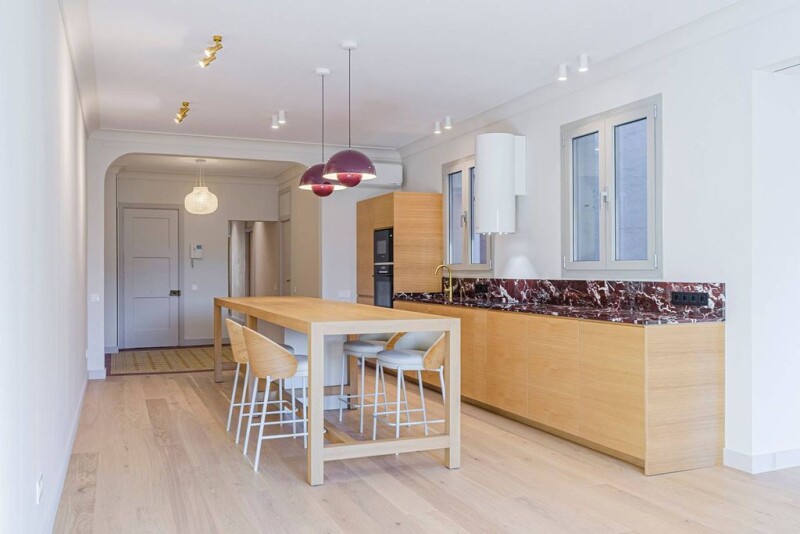 Magnificent apartment located in the heart of Sarrià, on a high floor of a classic building. This elegant residence, recently renovated with high-quality finishes, is situated in an unbeatable location, just steps from Turó Park. The apartment features three spacious double bedrooms, one of them en suite, providing a high level of comfort and privacy. The second bedroom, also double, has its own walk-in closet, offering convenient and organized storage. The third room can be used as a private dressing room. Additionally, the bedroom area includes two additional bathrooms, ensuring maximum convenience for all residents. The living space is divided into day and night zones. The night zone, with the three bedrooms, faces a quiet inner courtyard, ensuring peace and tranquility for rest. The day zone faces the exterior, flooding the home with natural light and connecting it to the vibrant atmosphere of Sarrià. The social area of the apartment includes a spacious living room, perfect for hosting guests and enjoying family moments. Adjacent to the living room are the dining room, an office, and a guest toilet, providing functionality and comfort in daily life. This designer apartment has been renovated with high-quality finishes. We have a detailed list of finishes available for your review. If you have any questions, do not hesitate to write to us and schedule a visit to this fantastic property.