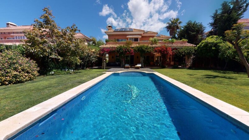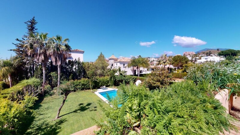 4 Bedroom Villa with Sea Views in Nueva Andalucia The location The villa is located in Nueva Andalucia. It is just around 8 minutes away from Puerto Banus Beach, Playa Rio Verde and Ocean Club. 2 minutes away from Las Brisas Golf Club, Los Naranjos Golf and Aloha Golf. Malaga Airport is 40 minutes away and Gibraltar Airport is 47 minutes away. All distances refer to driving. The property The villa is built on 3 levels. It has 4 bedrooms and 4 bathrooms, one lovely outdoor pool with nice gardens and terraces. It has a garage where you can park 2 cars and extra 2 parkings in the courtyard. Main Floor From the entrance you dive into a hallway that leads you to the living room. The dining room is also in the area but in a separate space. The terrace opens up to the lovely garden and pool. The kitchen is separated and it is fully furnished and equipped. Top Floor The top floor has 3 bedrooms. Master bedroom with an en suite bathroom and a dressing area with a private balcony. 2 bedrooms that share one bathroom. Lower Ground Floor One bedroom with a private bathroom. A leisure room and a laundry room. The garage.