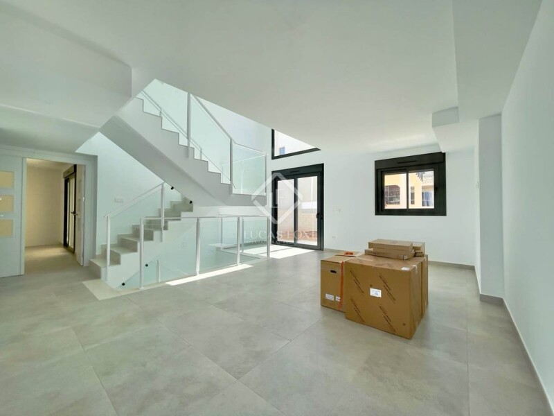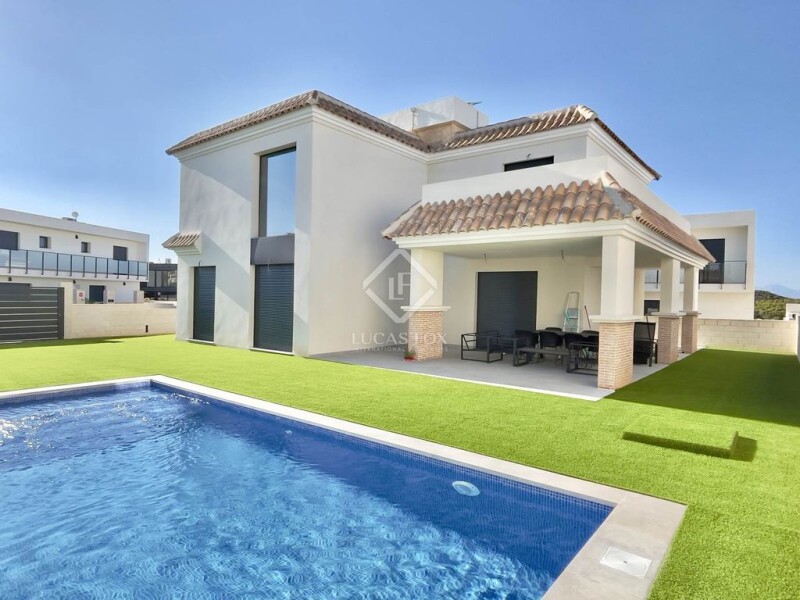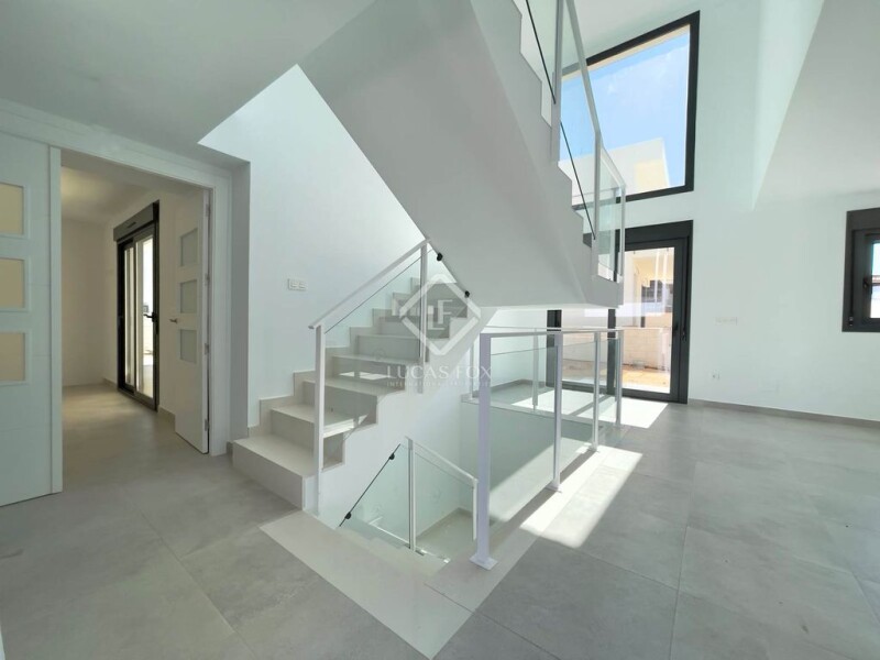 Lucas Fox presents this wonderful villa in Gran Alacant, a Mediterranean house that stands out for its architecture, lines and its combination of modern and traditional styles. The villa occupies 270 m² distributed between two floors plus the lower ground floor, with 69 m² of terrace and on a plot of 509 m². Upon entering, we go directly into the living-dining room. It is a wonderful double-height room , with several exits to the garden area, the pool and the covered parking. To the left, we find the large kitchen, well connected to the covered terrace, ideal for family meals and relaxation. The floor is completed with a bedroom and a bathroom, perfect for staff or for possible guests. Going up to the first floor, there is the large main bedroom with a private bathroom and access to a pleasant private terrace, as well as two double bedrooms with access to a terrace and a shared bathroom . Going down to the lower ground floor, we find a large, well-lit and ventilated room , which can be divided into a bedroom, a bathroom and a second living room or games room. This area can be delivered with or without finishes, at the buyer's choice. Exterior, there is a garden with a swimming pool, an outdoor dining room and a chill-out area, all to enjoy the excellent climate of the area. The large windows of the property allow plenty of natural light to enter for much of the day. The villa has been built with sustainability and energy savings in mind and improvements have been incorporated such as excellent thermal insulation or the integration of renewable energies for the production of hot water. This villa model combines modern and Mediterranean styles. The modern style is represented by the union of straight lines, flat-surfaced walls and large windows with modern-style metal carpentry. As for the Mediterranean style, it features warm colours with openwork shutters, lattices, grey tones, tiles and high ceilings. Please contact us to arrange a viewing and not miss this unique opportunity.