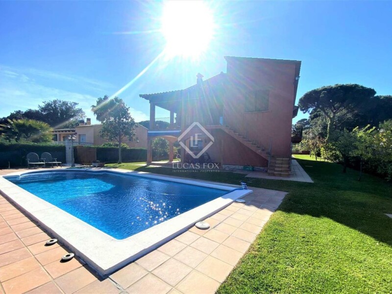 Rustic-style villa located in the Mas Pallí development in Platja d'Aro, 5 minutes by car from the sea and the town centre. It was built in 2002 and is presented in excellent condition. It has 295 m² built on a flat and sunny plot of 826 m². The property is distributed over two floors. The property is accessed on the upper floor, where a charming and spacious hall leads to the living room and kitchen. Both rooms are very spacious and have access to a beautiful terrace and the garden with a swimming pool. In addition, this same floor offers three double bedrooms (one of them with a private bathroom) and a complete bathroom. The lower floor offers a large garage, another kitchen with access to the porch and the garden and, finally, a very spacious bedroom that is currently used as a study. The exteriors include a well-kept garden with barbecue and outdoor dining room, as well as a large swimming pool, all perfectly designed to fully enjoy the Mediterranean climate.