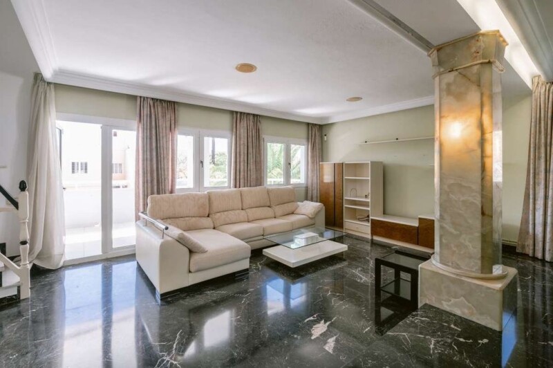 The surroundings This duplex apartment is located in Can Misses, very close to the beautiful Ibiza Town. The home is part of a residential building with only four neighbors, situated in a peaceful neighborhood, making it an ideal family home near schools, as well as a large playground. The property enjoys the tranquility of a quiet side street off Av. Sant Josep de sa Talaia, while still being close to the vibrant heart of the island, Ibiza Town, and Dalt Vila. Within walking distance, you will find numerous local supermarkets, shops, bars, and restaurants. You also have the luxury of being just a short distance from the beach. The lively sandy beach of Figueretas is only a 15-minute walk away, perfect for a relaxing beach day. Alternatively, you can take a pleasant stroll along the promenade to the renowned Playa d'en Bossa, where a wide variety of beach clubs and seaside dining options await. Ibiza Town's marina is just a 25-minute walk from the property, and with the airport accessible in less than 10 minutes, traveling to and from the island is a breeze. This home truly offers the best of city living with the charm of island life. The apartment This impressive 350m2 duplex is spread over three levels and offers a rare opportunity to own a spacious home next to the heart of Ibiza Town. Located on the first floor, the apartment is easily accessible via the communal staircase. Enter a bright and spacious living room with elegant and characteristic veined black marble floors. The traditional interior provides an excellent canvas for renovation, allowing you to combine modern upgrades with the apartment's charming and authentic character. The first floor features a multi-level living room decorated with marble pillars and a cozy fireplace, creating a warm and inviting atmosphere. Adjacent to the living area you will find a separate dining room and a separate large traditional kitchen, equipped with a pantry which can be used as a laundry room. This level also features a guest bathroom and ample storage space. The impressive marble staircase leads to the second floor, where 4 spacious bedrooms await. The master suite offers ultimate comfort and privacy with an en-suite bathroom complete with a jacuzzi bathtub, his and hers sinks and a private terrace. Each of the additional 3 bedrooms has its own spacious bathroom. Further on this floor you will find an office space with a terrace, perfect for remote working or working on creative projects. All rooms feature fitted wardrobes for maximum storage and convenience. Ascend to the upper level to find a spacious rooftop terrace with a large laundry room that also serves as extra storage space or can be transformed into a creative studio space. The outdoor spaces The absolute highlight of this property is the magnificent rooftop terrace. Enjoy a daily panoramic view of Ibiza Town that extends all the way to the shimmering Mediterranean Sea. Experience as well as breathtaking sunsets from this exquisitely beautiful solarium. This versatile space offers numerous possibilities to experience the Mediterranean lifestyle outdoors, whether you are sunbathing with the horizon in sight, or starting your day with a peaceful yoga or meditation session. Residents of the building also have access to a peaceful community garden, perfect for relaxing or socializing with neighbors in a peaceful setting. For added convenience, you can purchase a parking space in the building's private garage. This duplex home offers a unique renovation opportunity to personalize this great living space and transform it into your dream home.