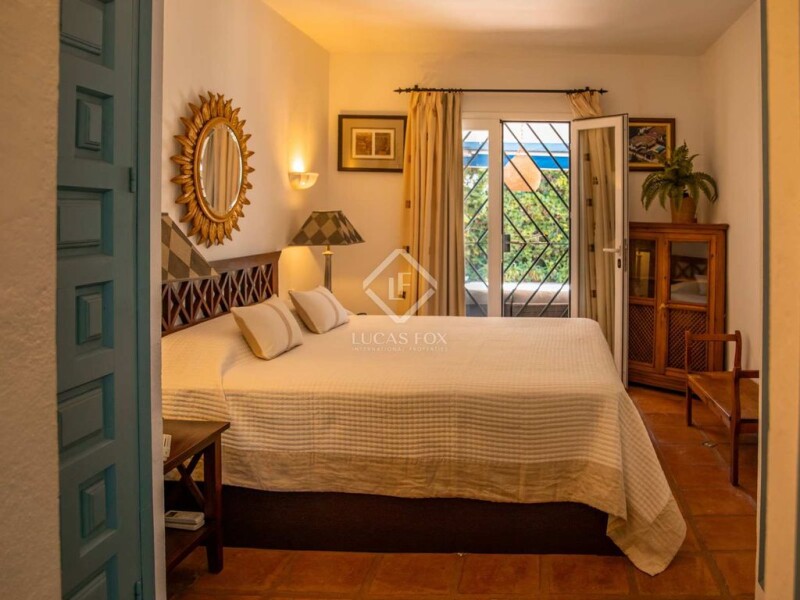 This charming villa is located in the western area of Estepona, in a very quiet residential zone where you can enjoy the sound of the sea and a cozy environment where most properties are of Mediterranean style. The property is situated in the central area of the plot, which has two access points, both suitable for cars. Upon entering the house from the porch, we find a spacious living room with a fireplace, from which some of the bedrooms, the dressing room, and the bathrooms are accessed. In the central part, connected to this living room, is the charming dining room with a high vaulted ceiling and an integrated kitchen. On the other side of the dining room, we find a second rustic-style living room connected to the rear part of the house by a secondary entrance, from which we also go up to the upper floor of the house where the master bedroom is located. The ground floor has two large living rooms, both with fireplaces and access to the garden, a dining room with a fully equipped integrated kitchen, three bedrooms, one of them with an independent entrance, a dressing room, and four full bathrooms, three of them en-suite. On the upper floor, we find one of the master bedrooms with beautiful partial sea views, an en-suite bathroom with a hydromassage shower, and a small dressing room. There is a possibility to consider expanding this floor, which would allow for more corners with views of the beautiful maritime landscape. The outdoor areas of the house include large parking spaces, a garage that also contains a storage room, and access to the rear terrace and the gym. In the front part of the plot, there is a garden paved with terrazzo, a large pool, and the house's porch. This property has been renovated and the plumbing and electrical elements updated, so its current condition is good and it is ready to move in. It has central heating and air conditioning. Lucas Fox recommends visiting this charming property that offers the opportunity to live just steps away from the sea with all the comforts.