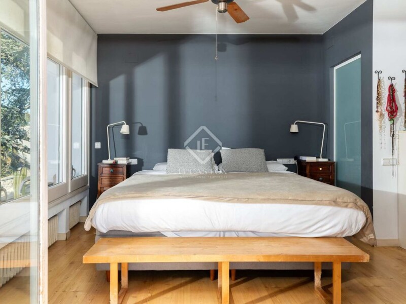 Lucas Fox presents this cozy house with 326 m² built, located in the Montjuïc neighbourhood , one of the most coveted residential areas of the city of Girona, due to its tranquility and its proximity to the Barri Vell, just a 10-minute walk away. It is located on a 921 m² corner plot that, thanks to its southwest orientation and its magnificent terrace, offers privileged views of the entire city, the cathedral and the church of San Félix. The property combines in a harmonious and balanced way the original style of a property built in the 80s, with a modern, warm and comfortable style. It includes quality finishes with the personal touch of the current owners, who have prioritized the conservation of the original materials, without giving up comfort in each of its corners. It is worth highlighting the luminosity that the bedrooms receive, as well as the spaciousness of the terrace. On the upper floor , with direct access from the street, we have four double bedrooms, all exterior, and three full bathrooms, including the large main bedroom of more than 30 m². This upper level is completed with a small study. On the lower floor , we find a cozy, comfortable and functional open space, which integrates the kitchen, dining room and living room. This floor, with access to the garden, is completed with a studio, currently prepared as a music area and a small garage, as well as a small wine cellar and a multipurpose area or utility room. The exterior consists of a large corner plot of 921 m², to finish designing to the taste of the future buyer. It currently has a chill-out area, with a summer kitchen. A magnificent opportunity for families who want to enjoy a special property in one of the residential areas of Girona, with unbeatable views of the city. Contact us for more information or to arrange a visit.