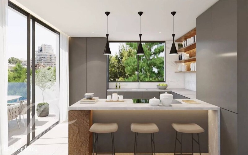 All apartments have a layout and flow that lead to exterior south facing porches and terraces, both covered and uncovered. A north west facing uncovered terrace with a south west covered terrace where you will have morning and evening sun. This apartment has 2 Bedrooms and 2 Bathrooms offering a total of 89m2 indoor living space and 47m2 of exterior covered and uncovered terrace. There is also underfloor heating and air-conditioning throughout the apartment, indirect lighting, stone and wood floors and an excellent standard of appliances and all bathroom, kitchen and flooring materials are from Porcelanosa. There will be two styles that buyers can choose from. One garage parking and storage space are included in the price. The project will be finished September 2024. Son Armadans is nestled between Santa Catalina and El Terreno and some part of the Paseo Maritimo belongs to it, too. The upper part is a tranquil mostly residential area and was one of the most exclusive ones of Palma where some grand mansions are still to be found. Today it is sought after by families who like to live in a quiet neighborhood with all amenities close by. The Bellver Castle and the surrounding park are a great location for any outdoor activity and the patio of the castle is site of all sorts of concerts during the summer months. Many hotels, bars and restaurants are located along the Paseo Maritimo and for any water sports enthusiasts the Club de Mar and the Royal Club Náutico are within easy reach. Many regattas and social events will take place during summer and the restaurants are a hotspot for locals and visitors. In addition to the larger villas Son Armadans consists of well-kept apartment buildings located in quiet small streets. The Via Cintura, the highway that leads around Palma, can be reached in a few minutes. Supermarkets as well as schools, sports and medical centers are nearby. Beaches and the yacht clubs of Palma are easily accessible.
