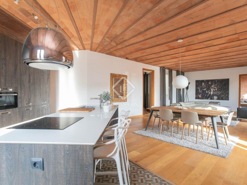 Discover this exceptional penthouse in one of Barcelona’s most coveted neighborhoods. This luminous and spacious top-floor residence features an expansive living area with access to three private balconies, offering stunning city views and ample outdoor space. The open kitchen is fully equipped with a large central island, perfect for cooking and entertaining. The sleeping area includes 2 double bedrooms. The master bedroom comes with a private bathroom and direct access to a balcony. The second double bedroom is generously sized, and the third bedroom, situated near the entrance, includes its own private bathroom and kitchen—ideal for guests or as a separate rental unit. This penthouse is located in a charming corner building and features a unique layout. It’s divided into two distinct units sharing a common entrance. Don’t miss this rare opportunity to own a stunning penthouse in an unbeatable Barcelona location. Contact us today for more information or to schedule a viewing.