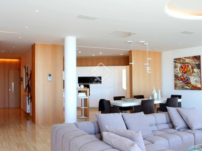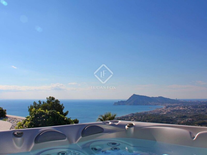 Situated in the Sierra de Altea well known to be a very privilege area, this luxury residential complex lies on a fenced 13,000 m² plot with 24-hour guarded security. This exceptional property is for those seeking a luxury lifestyle. Take advantage of the beautiful Mediterranean garden, the spectacular swimming pool area with a large 200 m² lake-pool with an artificial white sand Caribbean beach and a fun children’s pool. Excellent moments to enjoy with your family and friends. The quality of this exclusive property is present in each and every one of the elements that form part of it. From the entrance, you will be impressed by the extraordinary sea view over the whole bay of Altea. You will cross the very large living room of around 60 m² with an impeccable interior design. Basically, one of the walls is made of first-class sliding glass fittings that give access to the huge terrace of 100 m² with a private jacuzzi. Altea’s mild climate allows enjoying open spaces all year around. That is why the terrace is large, private and facing the Mediterranean, endowing the apartments with the best panoramic views of the Costa Blanca. The flooring is made of all-weather wood by IPE® and the flowerpots are perfectly integrated in the building’s structure. Back inside, the open kitchen also offers beautiful sea views. This modern design kitchen is made of high-gloss lacquered furniture and it is equipped with top quality Miele® appliances. By taking the corridor that serves the night area, you will have 3 bedrooms offering fantastic sea views, bright and ample spaces, direct access to the main terrace and large fully fitted wardrobes. The spacious 50 m² master bedroom offers a walk-in wardrobe and a large ensuite bathroom. The 3 bathrooms are very large and offer walk-in showers, double washbasins and bathtubs. The master bedroom also includes a freestanding bathtub. All bathrooms are equipped with Duravit sanitary ware, countertops by Corian, taps by Hansgrohe® and wall tiling by Trend. Every effort has been made to maximize the comfort of this luxury apartment, including air conditioning hot and cold system and central heating with radiators throughout. A home automation system, controlled via electric switches and automation pads, touch screen from any PC connected to the property network, controls the video camera intercom access system and enables redirection of video intercom calls to mobile phones or landlines. There is also a spacious covered garage that holds several vehicles and a large storage area, all together totalling approximately 100 m². This area is restricted exclusively for homeowners of the same particular floor. This elegant residence offers the comfort of being just at 10 minutes away from the beaches, two ports where luxury boats are moored, and the palm-lined seafront esplanade, a wonderful place for spending evenings out for a dinner or a drink on one of the many terraces. For more information, please contact Lucas Fox on +34 628203730.