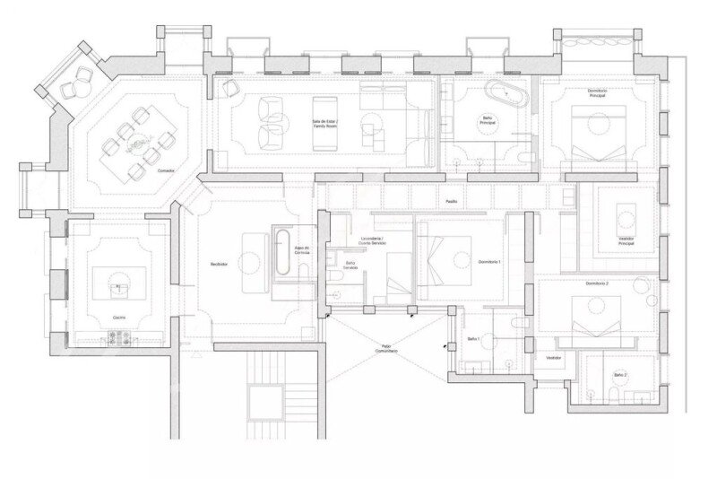 An exceptional property in need of refurbishment. Located on the corner of the 2nd floor of a beautiful building with a classic façade, it enjoys two orientations, 10 balconies to the exterior and 3.30 metre high ceilings. Thanks to its generous size and excellent natural light, there are numerous possibilities for refurbishment to adapt this unique flat to suit the buyer's tastes. One possible layout would be to make 3 large bedrooms with en-suite bathrooms and 1 service bedroom. In this configuration there would be a large dining room in the corner, an exterior 20 sqm kitchen and a large living room also exterior. The large entrance hall would be 26 sqm with a practical guest toilet. Located in the prestigious neighbourhood of Salamanca, in the exclusive Calle Goya, this property represents not only a unique investment opportunity in one of the most coveted areas of Madrid but also the possibility of designing an exclusive home to suit all your expectations.