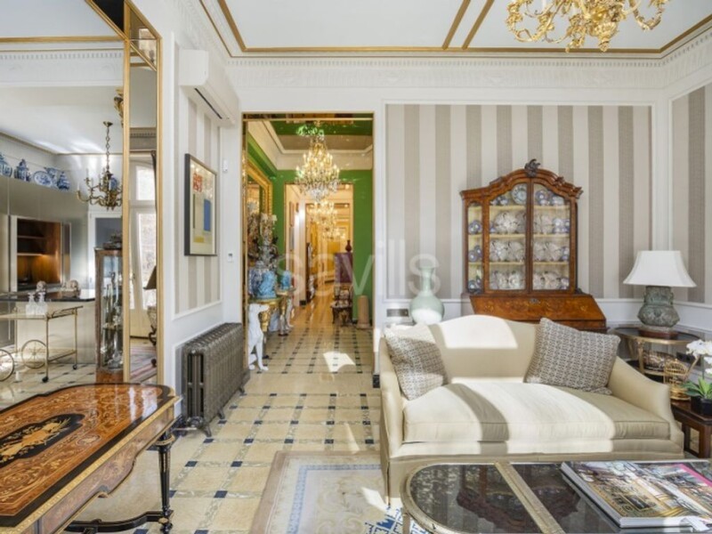 Savills presents this stunning home on Avenida Diagonal, a true gem in one of Barcelona's most iconic buildings. This classic property, transformed into a house-museum, has been carefully curated by its owners to highlight the exquisite furniture and artistic pieces that make it so unique. Upon entering, we are welcomed by a foyer that leads to the living room, which faces the prestigious Avenida Diagonal. Bathed in abundant natural light, the living area is divided into two distinct spaces, with an adjacent premium-quality kitchen. Every detailfurniture, doors, handles, and the beautifully coffered wallshas been masterfully designed by a renowned architect who has seamlessly blended the classical elegance of the furnishings with modern living. The property boasts three double bedrooms, two of which are en-suite with private bathrooms. Moving through a wide and regal hallway, we find a guest powder room and the first double bedroom with its own bathroom. Continuing down the hallway to the night area, we discover two more double bedroomsone featuring a spacious marble bathtub and the other currently used as a sitting room. The interiors showcase silk-covered walls, silk curtains that harmonize with each room's color scheme, and expertly restored coffered ceilings. Originally a five-bedroom residence, this home has been reimagined into a three-bedroom masterpiece in the sought-after Sant Gervasi neighborhood, offering a top-tier renovation for lovers of timeless classic interior design. The living room and bedrooms are furnished with authentic period pieces, primarily of French and Italian palace origin, which are included as part of the property's offering. The kitchen is equipped with high-end designer appliances, strategically integrated to blend seamlessly with the living area. An incomparable residence in a prime location, featuring high ceilings and a meticulous renovation that makes it truly one of a kind. Perfect for antique enthusiasts, this jewel-like apartment is ideal as a professional office, embassy, or family home. Contact us for availability and to arrange a visit to this exceptional Barcelona property.