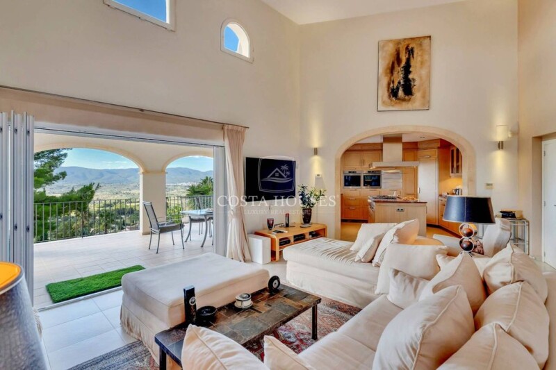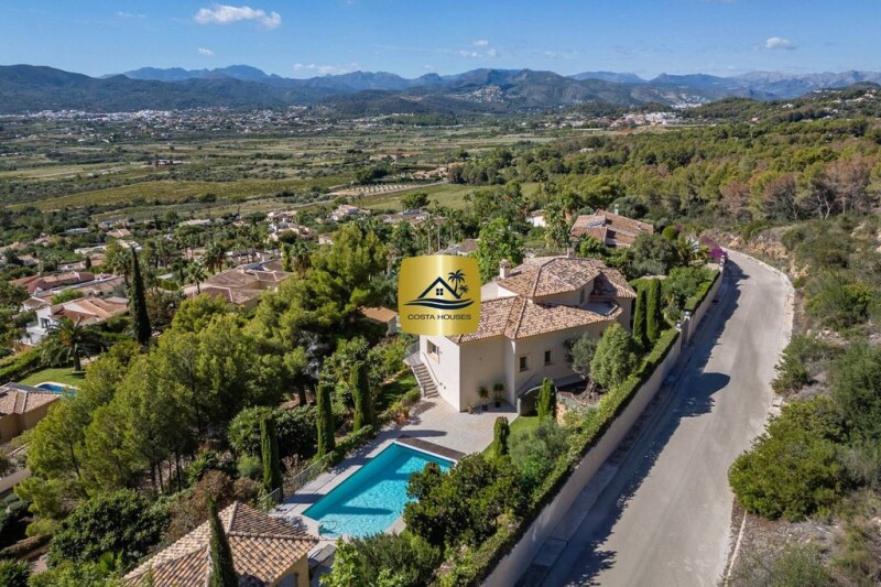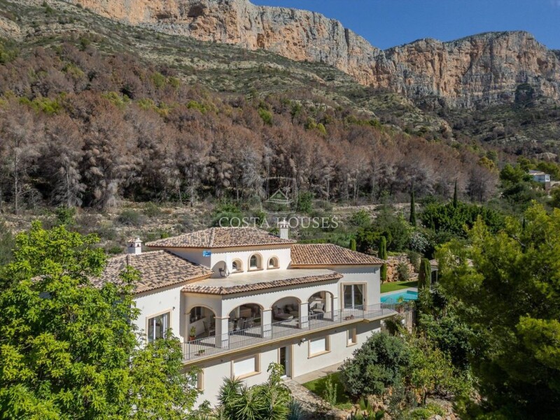 Villa Andromeda in Javea - Luxury with impressive views of the Montgó National Park and proximity to Golf La Sella, surrounded by Mediterranean gardens and located in one of the most privileged areas of Jávea~~Villa Andromeda is in an exceptional location, just minutes from Golf La Sella and the luxurious Hotel Marriott, offering a unique combination of privacy, luxury, and access to high-level services. This magnificent villa stands out for its panoramic views of the Montgó National Park and its south-facing orientation, allowing for unparalleled natural light throughout the day.~~The property is surrounded by well-maintained Mediterranean gardens, adorned with palm trees, perfectly manicured lawns, and a heated pool with an automatic cover, creating the ideal environment to relax and enjoy the Mediterranean climate.~~On the main floor, a double-height living room connects to a spacious curved terrace, the perfect place to enjoy views of the valley and Montgó. This level also features two large master suites, each with its own walk-in closet and private office, which can be adapted into additional bedrooms if desired.~~The lower level offers an independent apartment ideal for guests, with two bedrooms, a living room, a full kitchen, and direct access to the garage, ensuring privacy and comfort for visitors.~~Among the outstanding features of Villa Andromeda are underfloor heating, ducted air conditioning, and a full list of luxury specifications, making this villa the perfect family home for those seeking a high-end lifestyle in an exclusive setting.~~At COSTA HOUSES Luxury Villas S.L ®️, we invite you to discover this unique gem in the heart of Jávea. With our expertise in the luxury market, we are here to help you find the perfect property that meets your highest expectations.