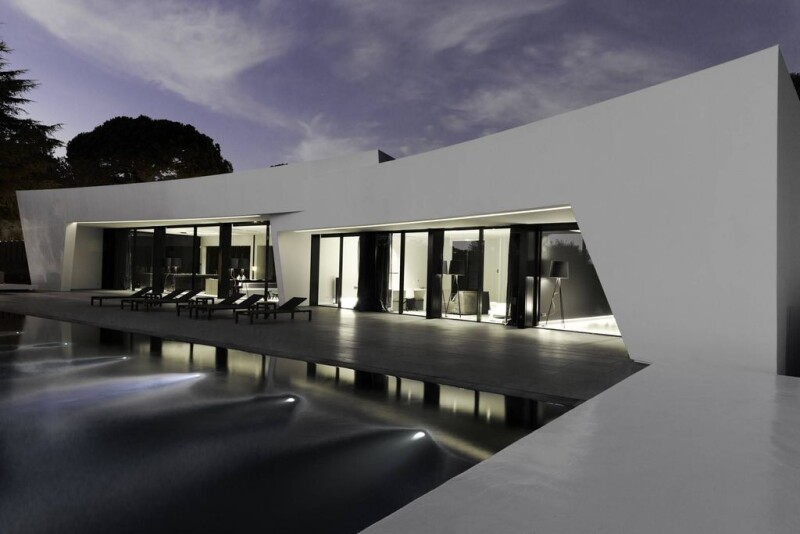 Spectacular design work Sant Vicenç de Montalt. In the studied exterior, it draws attention to a studied set of platforms distributed in a perimeter way facilitating the access and simultaneously giving rise to different environments. The 32x6.5m swimming pool has a double jacuzzi area with three massage levels inside. The depth provided by the natural stone with silver veins creates an optical effect like a mirror. The house is organized in two volumes that allow us to differentiate the day area from the night area on a single floor. The large windows with hidden carpentry provide great luminosity. The kitchen is composed of two islands and cabinets in column integrating all services. The dining room is presided by an oak table with capacity for 8 people. The living room is composed of a custom designed sofa, as well as the rest of the furniture, the sculptural fireplace draws attention. The night area is composed of two double bedrooms, a master suite and an office, each with fully equipped bathrooms. The rooms have the ability to become a single space with the possibility of different uses. The lower floor has a large hall that neatly distributes the spaces, a large glass window allows visual contact with the cellar and the gym. The latter has been equipped with state-of-the-art machines. From the gym we access the spa, a real wellness area, equipped with a heated pool with 3 levels of jacuzzi, waterfall, water cannons, sauna, sensations shower and bath. Following this we find a multifunctional room. The guest suite is the last piece that makes up this area.