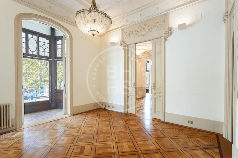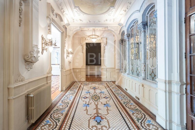 PROPERTY IN A MODERNIST PALACE Berkshire Hathaway HomeServices Barcelona, a consultancy firm specialising in the marketing of exclusive, luxury properties in the best areas of Barcelona, offers you this privileged property on the main floor of one of the most emblematic and exclusive modernist palaces in Barcelona. The work of a renowned architect from the beginning of the 20th century, conceiving his work in the modernist period at its maximum splendour. Stately flat with majestic garden terrace located in a modernist palace in Paseo de Gracia. We find this property for sale on the main floor of what is surely the most exclusive modernist palace on the most coveted street in the city, Paseo de Gracia. Located on the main floor of the building, it enjoys both its 632 m² interior and its 306 m² exterior terrace preceded by a central fountain and surrounded by landscaped areas. The interior welcomes you from the decorated entrance hall leading you, on one side, to the main area, astonishing you with its first distribution room with exquisite mosaic floors and windows worthy of a palace, giving way to the main living room with its delicate decoration from the period mouldings of the high ceilings to the perfect assembly of the parquet flooring that runs throughout the property. This main room goes hand in hand with the adjoining living room, both with views of the Passeig de Gràcia, with direct access to the elegant bar area and entirely made of mahogany, which leads you to the strategic location of the kitchen. Another room, ideal for an office, is accompanied by the most elegant courtesy toilet fully decorated in authentic marble. Moving on to the other area of the property, we enter the large living room, library and lounge area completely covered in the highest quality wood. This area also enjoys 4 bedrooms, the master bedroom with double height, elegant dressing room and complete bathroom with marble bathtub with shower and sauna add up to 50 m². Thanks to the high ceilings, the interior area on the upper floor has several independent rooms, one of them en suite, the service areas has a kitchen, living room, and service entrance, making this area totally independent. The large living room opens onto the large marble terrace, making it the idyllic and favourite area of the property. A parking space for 4 vehicles is included with the property. The property has a porter service. For more information, please do not hesitate to contact Berkshire Hathaway HomeServices Barcelona, specialists in high standing properties in Barcelona.