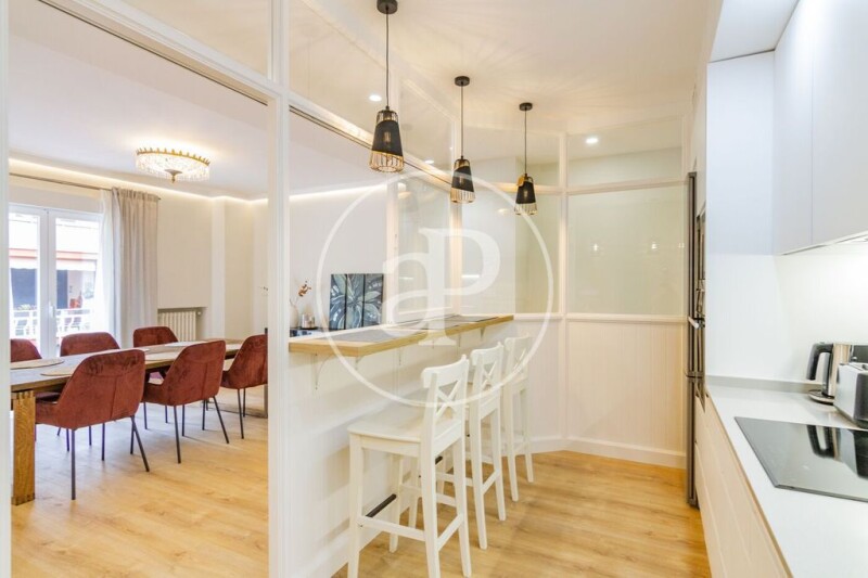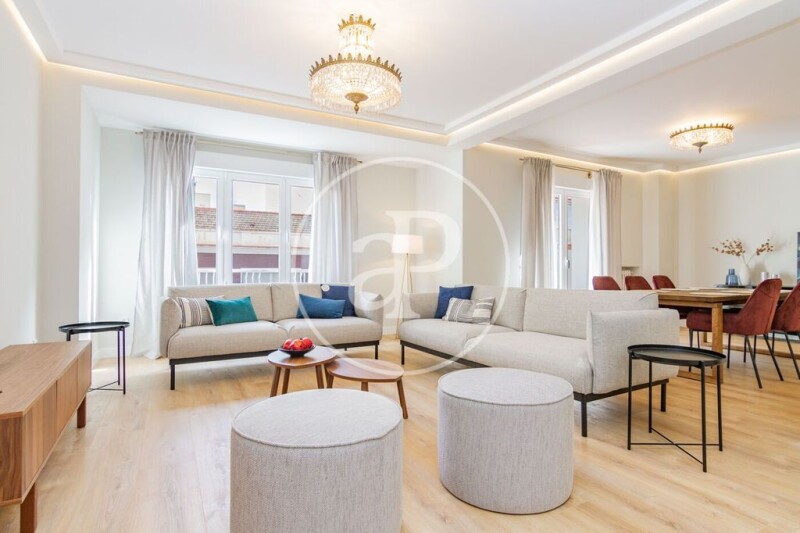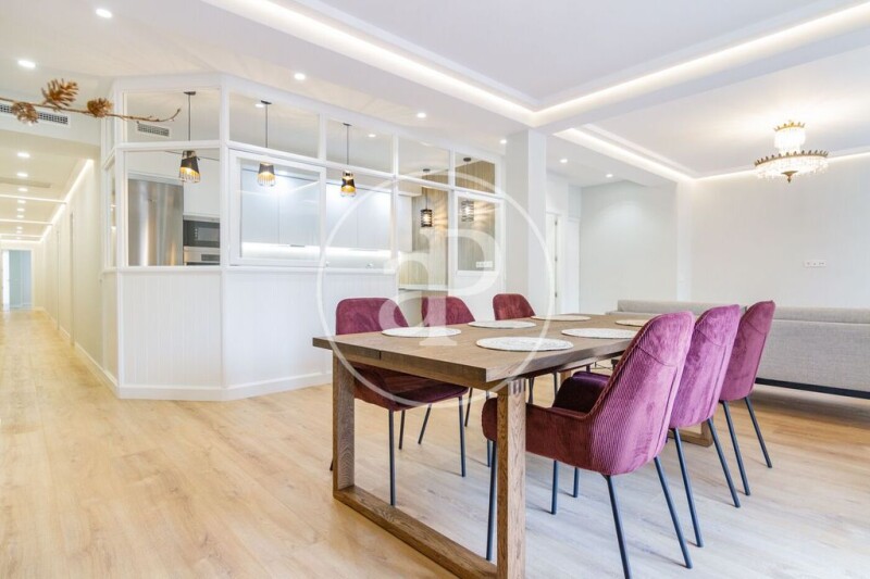 In Hilarión Eslava street, a step away from the Plaza de Cristo Rey, is this magnificent super bright apartment, fully renovated brand new and furnished. The property has a total area of 243 sqm and is distributed in a large living room with terrace, living and dining area with kitchen integrated in the living room, but with the possibility of isolation, thanks to a window with sliding doors, plus a guest toilet. In the night area and through the hallway we find 5 bedrooms, all en suite and a laundry area with washer and dryer. All bedrooms are doubles with large fitted closets, bathroom and desk; the master bedroom also has a glazed terrace. The property has central heating, ducted air conditioning, and east and west orientation. The closings are of high quality and the floor of wood. The building has an elevator, concierge and the Islas Filipinas metro station is very close. There is possibility of parking in the building next door. It is a residential area surrounded by public and private universities and hospitals, so profitability is guaranteed. Can you imagine living here?.