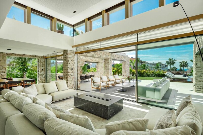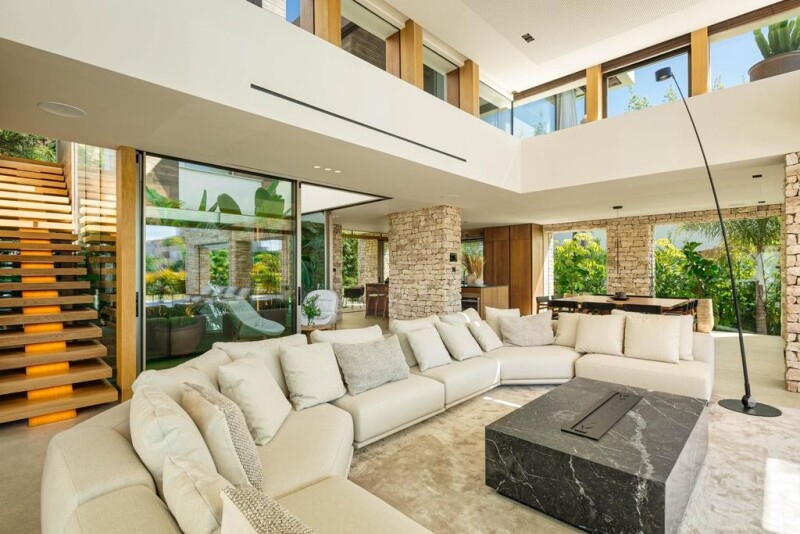 Exuding architectural excellence, this stunning contemporary villa in Nueva Andalucía offers a prime location just minutes from Puerto Banús. Designed for an unparalleled lifestyle, this masterpiece combines cutting-edge design with the highest quality finishes, ensuring both luxury and functionality. A striking infinity pool seamlessly blends with the villa's modern exterior, complemented by ambient LED lighting that enhances the outdoor experience. Expansive terraces provide multiple chill-out areas and alfresco dining spaces, perfect for entertaining or unwinding in style. A private driveway leads to a spacious garage, ensuring privacy and convenience. The interior is a showcase of modern elegance, featuring an open-plan living, dining, and kitchen area bathed in natural light. Floor-to-ceiling windows and a double-height ceiling create an airy and spacious ambiance, while Travertino Tajal stone walls add a warm, sophisticated touch. The state-of-the-art kitchen boasts high-end appliances, natural oak accents, and generous storage, with direct access to both formal and intimate dining areas. This exceptional villa offers five en-suite bedrooms, each designed with exquisite attention to detail. The master suite is a private sanctuary, complete with terrace access, a beauty section, and an opulent en-suite bathroom. A lift conveniently connects all levels, leading up to a spectacular rooftop terrace with breathtaking 360º views of La Concha mountain and the Mediterranean Sea. The lower level is dedicated to leisure and entertainment, featuring a custom-designed bar, an elegant wine bodega, a chill-out lounge, and a TV section that doubles as a home cinema. A unique design feature allows for captivating views of the swimming pool from this level, adding to the villa's distinctive character. Ideally situated near the renowned Hard Rock Hotel, Centro Plaza shopping center, and Puerto Banús, this villa offers easy access to Marbella’s best amenities while maintaining a sense of exclusivity and tranquility. Contact us for more information or to arrange a visit.