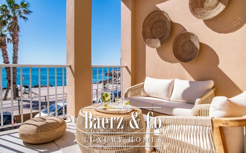 This spacious, south-facing luxury apartment is located in the first sea line of Portixol. The property has recently been completely refurbished to a very high standard and offers spectacular views of the bay of Portixol and the sea. On approx. 130 m² of living space, the apartment is divided as follows: a spacious and light-flooded living/dining area. Adjacent to this is the high-quality luxury kitchen with Gaggenau and Miele appliances, three bedrooms, two bathrooms (one of which is en suite), a utility room as well as an approx. 41 m² front terrace and an additional approx. 35 m² rear terrace. This property is rounded off with a garage parking space as well as all amenities in the immediate vicinity such as: Restaurants, bars, supermarkets and as well as short distances to the airport and the city center, which can be reached in just 5 minutes. The apartment is sold fully furnished! - Garage space - Underfloor heating - Air conditioning - KNX - Smarthome - Kitchen appliances from Gaggenau, Bora & Miele - Aluminum windows with double glazing (CORTIZO) - Fully furnished ! - Storage space - LED TV - Soundbar in the master area and much more. Portixol is a small village near the Mallorcan capital of Palma that is particularly popular with locals. In fact, Portixol has become one of the most popular addresses in the whole of Palma de Mallorca, contributing to the lively lifestyle in the region. Several chic bars, cycle paths and beach clubs are positioned along the coastal area and the fashionable harbor. It is no longer a secret among gourmets that some of the best fish restaurants in Mallorca welcome their guests in Portixol. The surrounding bays and the center of Portixol are the perfect places to enjoy the Mediterranean flair of Mallorca or to do sports. The sandy beach is right on the doorstep. The international airport of Palma de Mallorca is also closer than expected, with a maximum journey time of ten minutes.