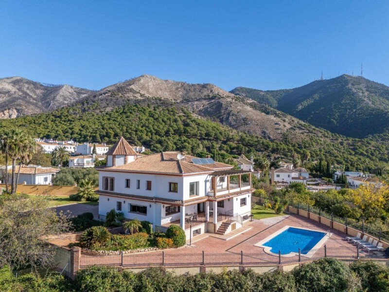 We present to you an impressive 635 m² villa located on a 2,388 m² plot in the prestigious Sierra de Mijas. This property is not only a luxurious residence but also an excellent investment opportunity thanks to its tourist license. With panoramic views of the Mediterranean Sea and the Sierra de Mijas mountains, this villa combines luxury, elegance, and comfort in a private and natural setting.~~A Spacious and Open Environment~Designed for those seeking a sophisticated lifestyle without compromising on space, the villa offers expansive indoor and outdoor areas. Its privileged location, surrounded by nature, ensures tranquility and privacy while being just minutes from major transport connections and urban centers.~~Connectivity and Accessibility~Strategically situated just minutes from the Mediterranean highway, the villa offers quick access to key locations in the region. Málaga International Airport is only 15 minutes away, the AVE train station is 20 minutes, and Gibraltar is an hour and a half by car. Its excellent connectivity allows you to enjoy all the advantages of the Costa del Sol.~~Layout and Amenities~The property is designed to maximize comfort in every corner. The basement features a spacious garage with an automatic door for multiple vehicles, a separate laundry room, a fully equipped gym, and direct access to the elevator that connects all three floors of the house.~~On the ground floor, an elegant entrance hall welcomes you, leading to a bright living room with south-facing windows that provide direct access to a private porch overlooking the pool and the sea. The fully equipped kitchen connects to the dining room and the elevator. This floor also includes a full bathroom and a large lounge with a bar, ideal for leisure moments.~~The upper floor houses the spacious bedrooms, all with en-suite bathrooms. The master suite boasts a large private terrace with south-facing sea views, perfect for enjoying the panoramic scenery. This room also features underfloor heating for added comfort. Additionally, this floor includes a separate jacuzzi, ideal for relaxation. All bedrooms have built-in wardrobes, dressing rooms, and a sound system throughout the house, offering a luxurious atmosphere in every space.~~Additional Features~The villa includes central heating and air conditioning throughout, a fireplace with high-quality wood finishes, a security system with intercom, alarm, and automatic shutters. The property is also equipped with solar panels for hot water, emphasizing energy efficiency. The quality of materials is exceptional.~~Impressive Exterior~The villa's exterior is equally impressive, featuring a large private garden with lawn, mature trees, flowers, and a large private pool, creating the perfect setting to enjoy the Costa del Sol's climate. The clear views around the villa enhance the sense of spaciousness and freedom.~~Investment Potential~With its tourist license as a rural house, this property offers great potential for high-end vacation rentals, making it a luxury investment with high profitability, as well as a spectacular private residence in a unique setting. This villa is an unbeatable option for those seeking a spacious property with open exteriors and magnificent views.