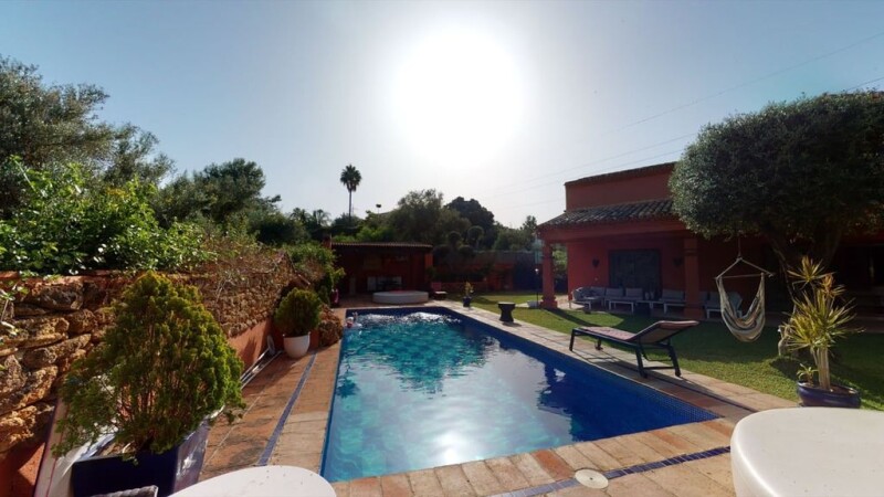 Casa Rosa Mediterranean style 6 bedroom villa in Nueva Andalucia Location Nueva Andalucia has become highly sought after for luxury house buyers. It is situated just north of Puerto Banus. Its reputation as "The Golf Valley" derives from its five well-known golf courses, comprising Las Brisas, Los Naranjos, Aloha Golf and La Dama de Noche (especially lit for midnight golf). The house is a 2 minutes drive from the glamourous Puerto Banus, and from all its amenities: shopping centers, restaurants, bars, banks, etc.. You can get to Malaga or Gibraltar airport in less than an hour. Property It is built on three levels - the lower ground floor, the ground floor and the first floor. Ground floor Entrance hall with guest toilets, and then access to the living room with its fireplace. Connected to a sitting room/ TV room, and to an intermediary room (could be a study or an office) on the way to the staircase to go upstairs. Kitchen with an island, and with a breakfast/dining area. Behind the kitchen is a room and a bathroom, this room can be used as a single bedroom for staff. There are two bedrooms on the other side of the entrance, with their bathrooms. First floor There are two other bedrooms here and a master bathroom, with a jacuzzi. The two bedrooms share a large dressing room. The master bedroom has access to a large balcony, which offers a splendid view over the mountains and over the beautiful, luxuriant garden. Lower ground floor There is an intimate bedroom / bathroom ensemble here. The access to this lower ground floor bedroom is from the outside, from the entrance door or from the garden on the other side. Outdoors Beautiful, luxuriant garden, with a swimming pool and a BBQ area and a summer kitchen. The shady porch with a patio is in direct relation with the house and the courtyard. On the other side of the house there is room for parking at least three cars.