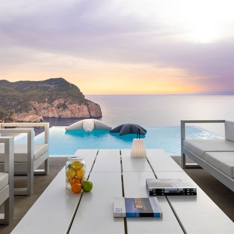 Luxurious Sea-View Villa in Ca Na Xamena Nestled 185 meters above the sparkling Mediterranean Sea, this stunning 730m² villa offers an unparalleled experience of Ibiza's natural beauty. Designed by renowned architect Ramon Esteve, the property perfectly combines modern elegance with timeless charm, creating a serene haven where breathtaking sunsets and panoramic sea views become a daily indulgence. The villa boasts eight spacious bedrooms and nine luxurious bathrooms, each designed to provide maximum comfort while embracing the mesmerizing sea views. Expansive terraces, sun-drenched lounge areas, and an infinity pool seamlessly integrate indoor and outdoor living, offering the ultimate island lifestyle experience. Entertain in style with a fully equipped modern kitchen, ideal for hosting intimate gatherings or lavish celebrations. The open-concept design ensures fluidity between indoor and outdoor spaces, enhancing the feeling of freedom and connection with nature. Ca Na Xamena's exceptional location and architectural brilliance make this villa a sanctuary of relaxation and sophistication. Experience the essence of Ibicencan life in a home where luxury meets tranquility, and every moment feels like a dream come true.