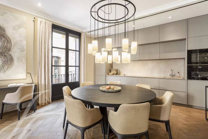 This fantastic apartment situated in an emblematic location in the old town has been reformed with high-quality materials. It offers a total of 178 m2 which is distributed in an elegant entrance area with a wardrobe, an open plan living-dining and kitchen area with Miele appliances, 3 bedrooms, and 3 bathrooms, 2 of them en suite, one offers a bathtub, the others are equipped with showers. There is also an additional guest toilet and a laundry room. The spacious master suite furthermore accommodates a small extra room that is currently used as an office. The apartment is equipped with parquet floors, air conditioning hot and cold, underfloor heating, and electric shutters. The numerous floor-to-ceiling windows provide the apartment with plenty of natural light. Next to the French balconies, there is a communal rooftop terrace with beautiful views of the surroundings and the sea. One of the best-preserved old towns in Spain featuring the most amazing Gothic architecture in the Mediterranean surrounded by hundreds of narrow streets, excellent shopping, great restaurants, art galleries, museums, and amazing ancient passages leading to important historical monuments, landmark buildings, and the jewel of the crown: Catedral Santa Maria, La Seu. It is very popular for the nightlife and offers very trendy places to visit, like Passeig del Born, Avenida de Jaume III, Passeig de la Rambla, La Llonja and some of the most visited “Plazas”, such as Plaza Santa Eulalia, Plaza Cort, Plaza Mercat and Plaza Mayor among others. Casco Antiguo is one of the most desirable districts for property investment. Many of them have been renovated over the past few years and turned into luxury apartments with all the modern amenities.