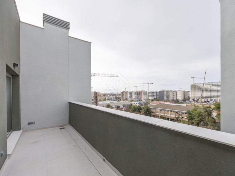 This exclusive four-bedroom duplex penthouse is located in Nou Patraix, one of the most dynamic and well-connected areas of Valencia. The spacious apartment boasts a comfortable and elegant design, with an interior area of 111.20 m² and several terraces totaling 19.05 m², with a layout designed to maximize natural light in each space. The penthouse's design offers cross ventilation and abundant light, thanks to its dual orientation. The layout clearly differentiates the day area . On the main floor , there is a spacious 26.74 m² open-plan living-dining room that receives plenty of natural light and has direct access to an open terrace, ideal for enjoying the fresh air and unobstructed views. The separate kitchen is highly functional and features high-quality finishes. Also on this floor are a full bathroom and a lobby. On the lower floor , the penthouse offers four spacious bedrooms. The 17.20 m² main bedroom stands out for its spaciousness. The other three bedrooms offer flexibility for different uses, such as family rooms, study , or entertainment areas. This floor also features a full bathroom and a covered terrace. In addition, the property is part of a residential complex with exclusive amenities , such as an indoor pool for sunny days, a fully equipped gym, and a communal garage with bicycle parking and storage room. Contact us for more information.