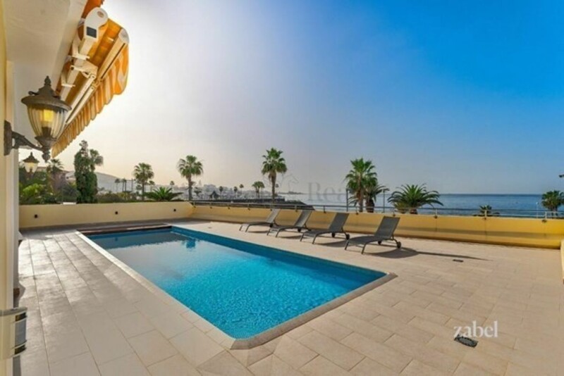 This is definitely the best villa for sale in Costa Adeje. A unique beachfront villa in the most exclusive Terraza del Duque complex, nestled between 5-star hotels, luxury shopping, fine restaurants, and the best white sand beach in Costa Adeje. Situated in a prime location, this waterfront property dominates the area, as it was built above the surrounding villas, guaranteeing absolute privacy and discretion. The large terrace offers space for a pool, sunbathing areas, and a dining area. Direct, unobstructed ocean views are guaranteed from almost all living spaces. The house is spread over 2 floors, with a basement that houses a 3-car garage, a gym, a sauna, a wine cellar, and a laundry room. The main floor is divided into a large living area opening onto the terrace, a fully equipped open-plan kitchen, 2 bedrooms with their en-suite bathrooms, and a guest toilet. The upper floor features a spacious master bedroom with en-suite bathroom and a fourth bedroom with en-suite bathroom. The covered terrace can be used as an office. This unique property was built in 1996 and completely renovated in 2015 and is in perfect condition. Community fees: €1,000 per year. Annual IBI property tax: €1,144.