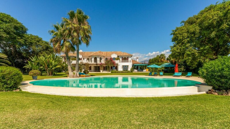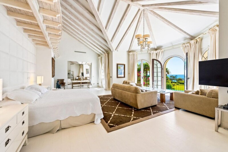 Frontline beach Mediterranean villa with rgreat potential in Estepona East Discover the epitome of luxury living in our perfectly situated beachfront villa, just over 2 km away from the bustling amenities of San Pedro de Alcantara and a mere five-minute drive to the vibrant hubs of Puerto Banus and Marbella. As you enter the property, a charming rose garden with fountains welcomes you, leading you to the grand front entrance. Step into the double-height entrance hall, adorned with an imperial staircase, a beamed ceiling, and an elegant upstairs gallery supported by timber columns. This remarkable villa spans two levels and a basement, offering ample space for your comfort. Ascend the sweeping staircases to the upper floor, where you'll find the master bedroom, a true masterpiece with soaring ceilings, his and hers walk-in closets, and a master bathroom featuring a handmade bathtub, a shower cubicle, and a combination of wooden and terracotta floors. Additionally, this level boasts five more bedrooms, four bathrooms, and a guest toilet adorned with exquisite hand-painted Moroccan tiles. On the main level, relish in the inviting living area accessible through the lobby, which opens up to a spacious covered terrace boasting awe-inspiring views of the Mediterranean Sea and the private pool. This level also features a guest toilet, an office with built-in cupboards, three double bedrooms with en-suite bathrooms, and a generously sized fully fitted kitchen with a vast dining area that provides seamless access to the garden and terraces.